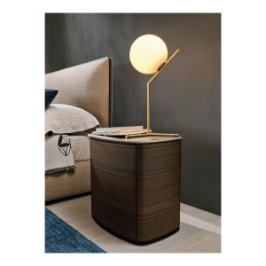 4040 is a generously proportioned bedside unit and an ideal companion for the wide range of beds offered by Molteni&C. Framework and drawers are made of eucalyptus essence and rest on a pewter-colored metal base. The top can be in eucalyptus or marble.