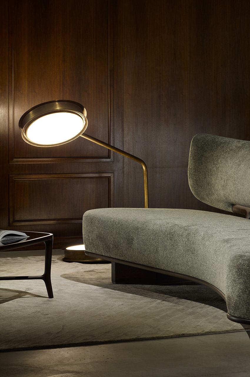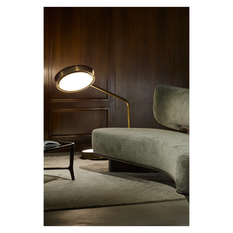 The Ceccotti Collezioni product range expands to include lights. Thanks to its collaborations with its designers, Ceccotti Collezioni proposes a series of lamps that add value to spaces. Vincenzo De Cotiis designed After Glow in 2008. Circular shapes dominate and are enhanced by the choice of materials. Brass takes centre stage, complemented by tempered glass, which diffuses the light of the LED located inside. The floor lamp After Glow T is perfect for embellishing a living room or reading corner. The three ceiling-mounted versions C, N and P are also part of the same After Glow family.