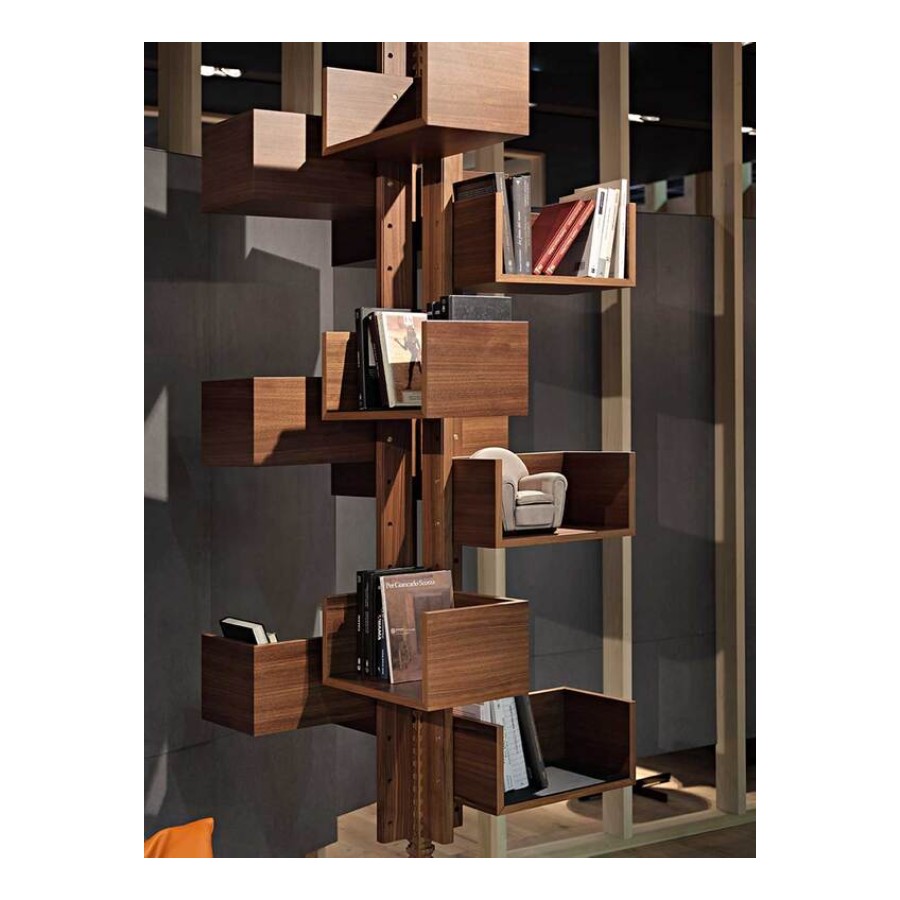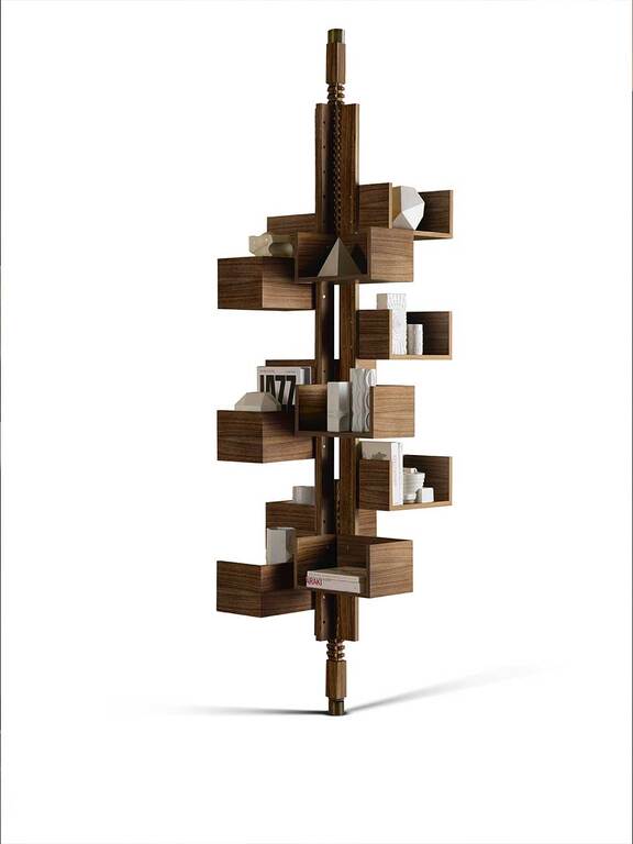 Designed in the late 50’s by Gianfranco Frattini as a “floor-to-ceiling” central bookcase, Albero was created for use in interior settings rather than for mass production. The Albero bookcase is formally associated with the Neo-Liberty period and, in terms of product type, with the floor-to-ceiling bookcase systems that were popular throughout the 1950’s and 60’s.