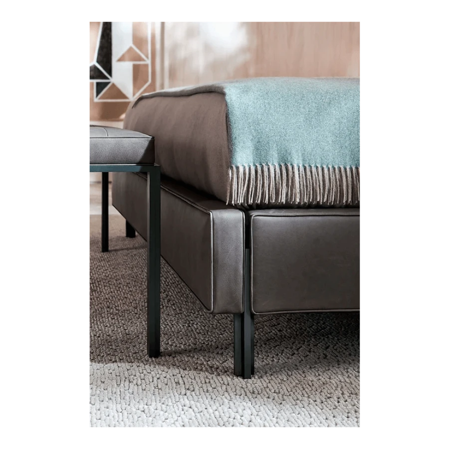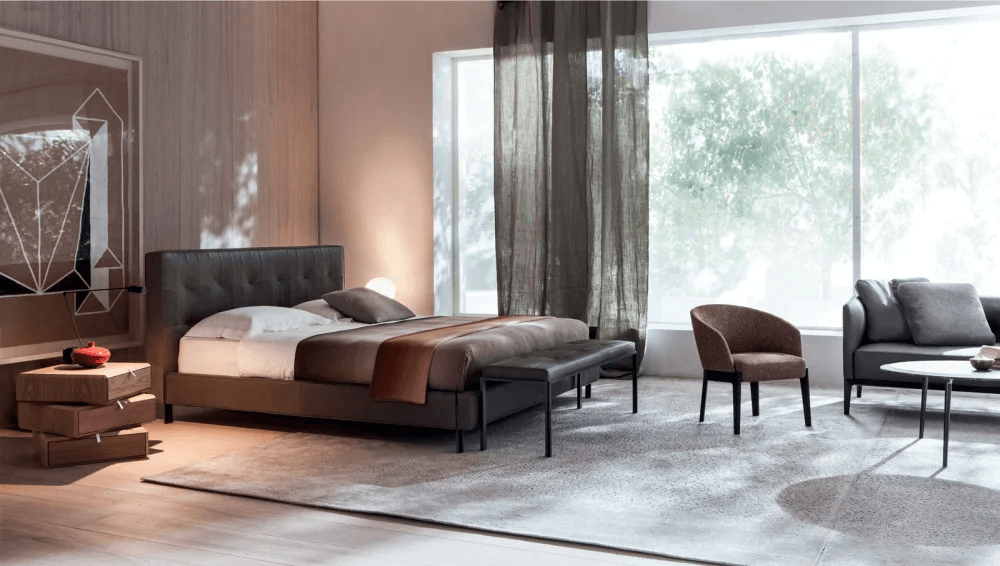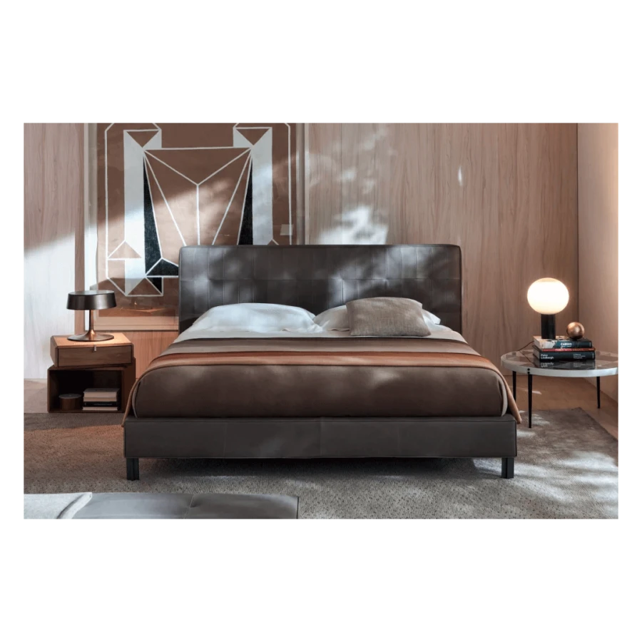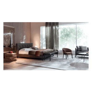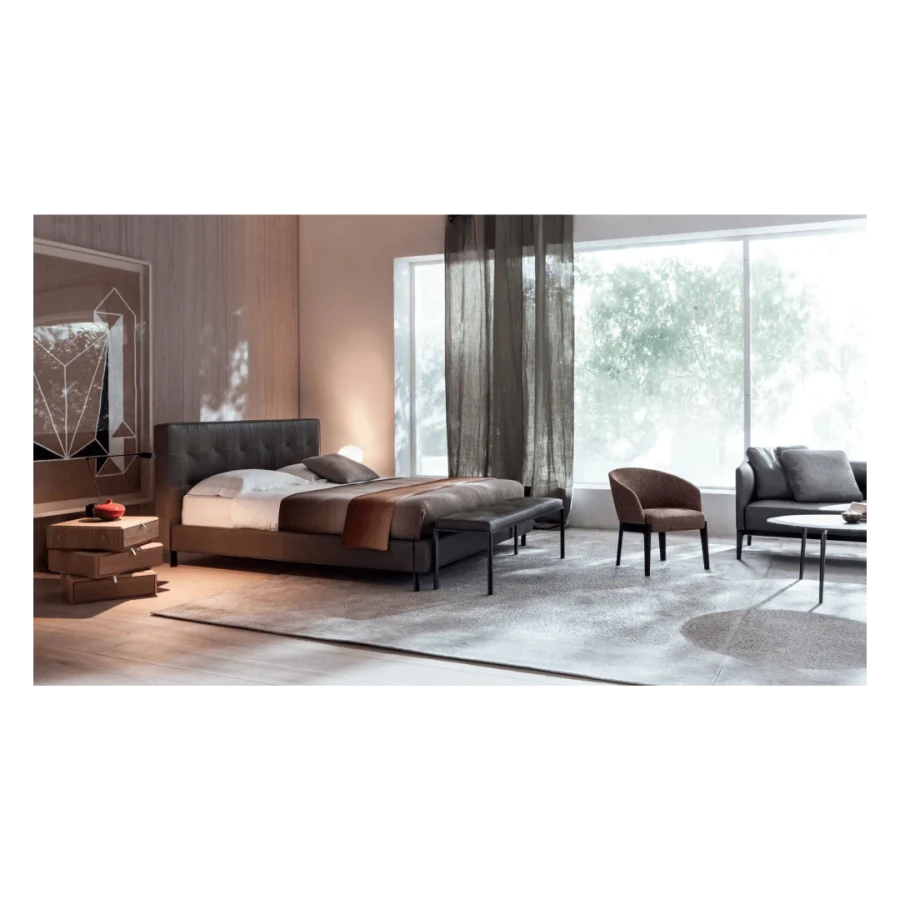 Volumes which are emphasized thanks to a particular type of stitching used for the head board, the capitoné, revised in a contemporary way. Feet finished in pewter. Upholstery that can be completely detachable in the Molteni&C range of leather and textiles. Anton can be combined with a bench with identical frame finishings and matching upholstery.