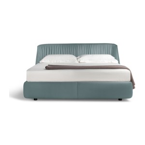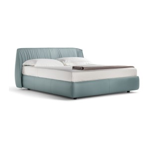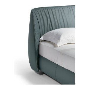 The storage box can be accessed by lifting the bed base using the two saddle leather handles that control a gas spring device, available with either a single or double opening movement.