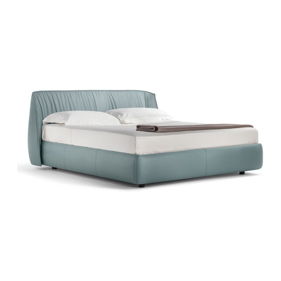 The Archibald bed with storage can accommodate a 170 x 200 cm mattress. The bed is covered entirely in Pelle Frau® leather, with the back also available in a Poltrona Frau Jacquard canvas variant, handy for positioning against the wall.