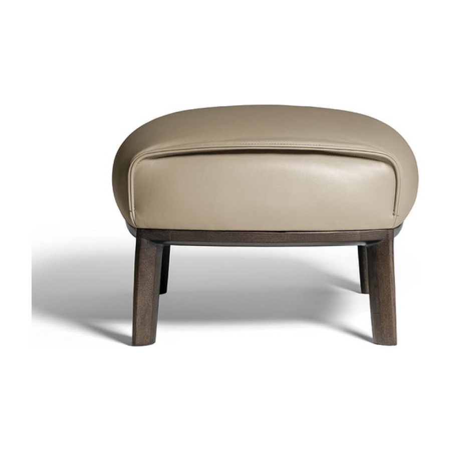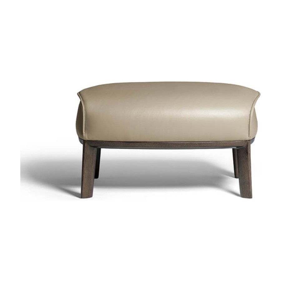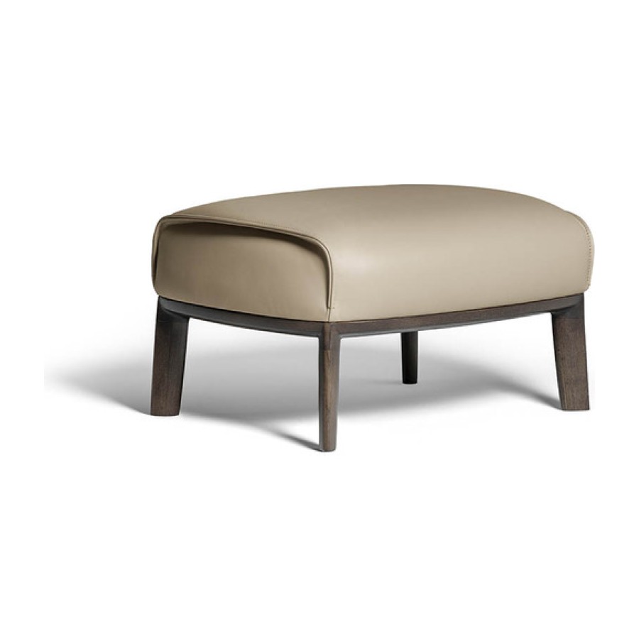 The Archibald pouf is available with Pelle Frau® leather or removable fabric upholstery, with contrast stitching in the leather version and tone-on-tone stitching in the fabric version. The structure is made of birch plywood, while the padding is in polyurethane foam, with polyester wadding applied in areas where extra comfort is required. The support base of the Archibald pouf is made of wood, with the base and four legs in solid ash wood, available in various finishes.