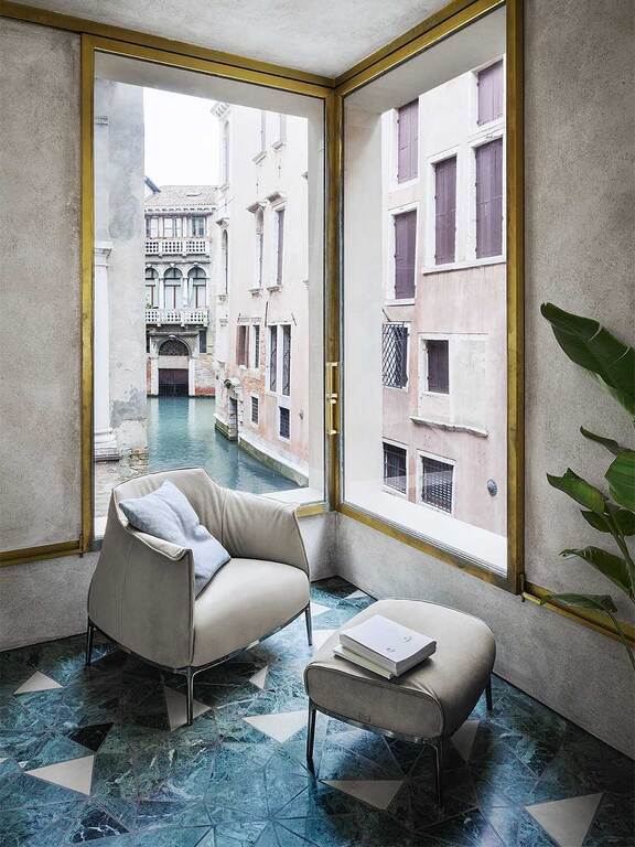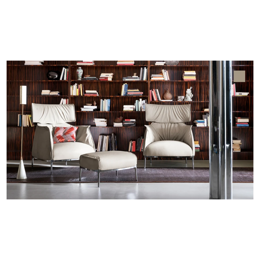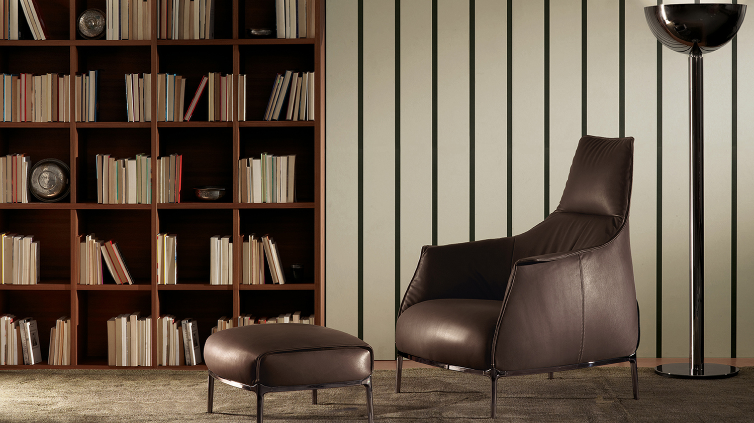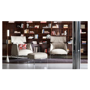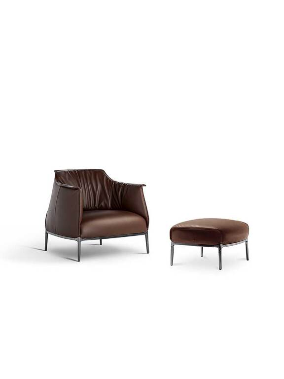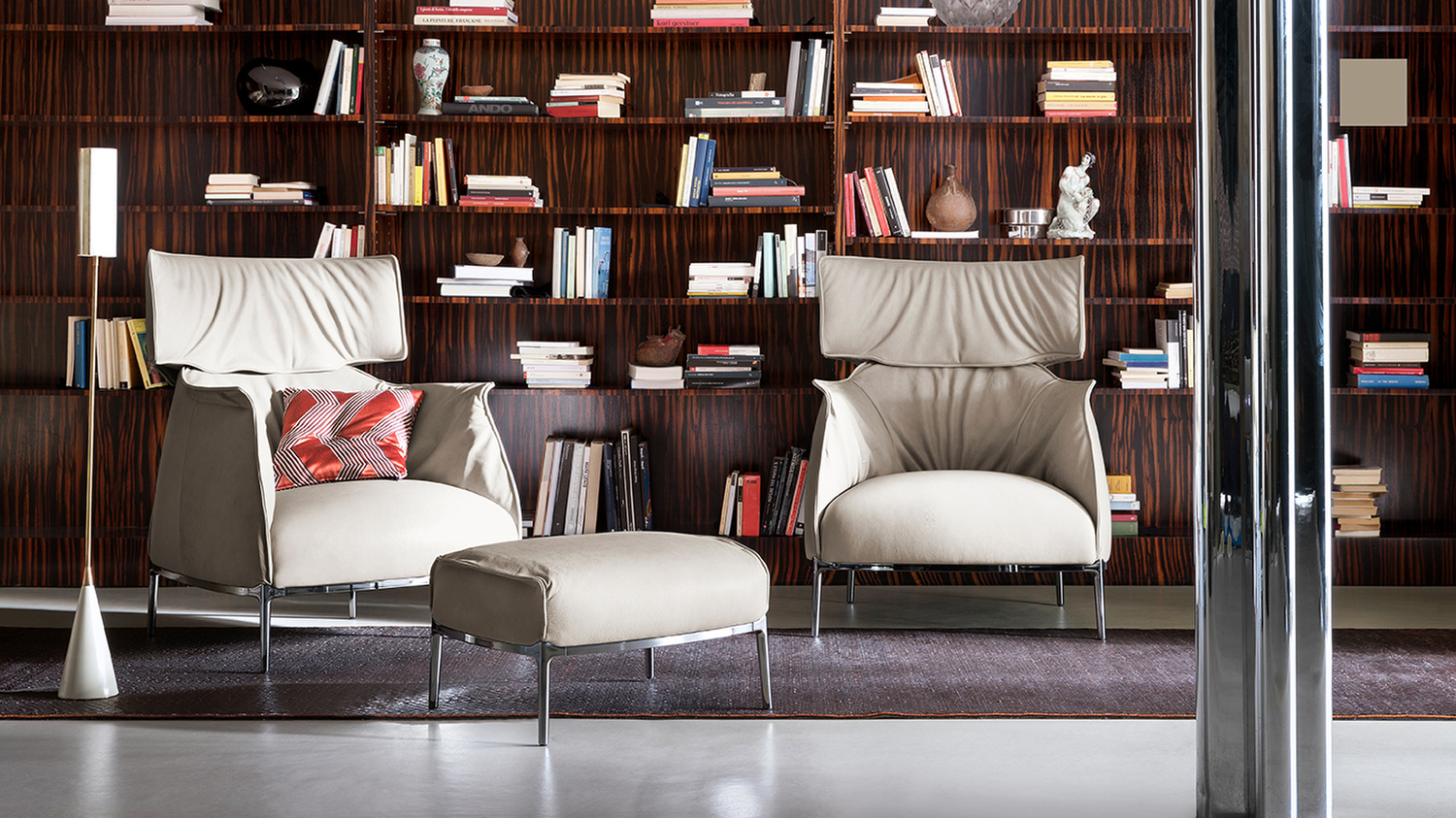 The Archibald seatings by Jean-Marie Massaud are the perfect combination of substance and form. The Archibald collection boasts a comfortable and enveloping design ideal for meditation and relaxation. The breadth and depth of the seat is balanced by the thin feet, which give an agile and slender overall effect. In the Archibald armchair upholstery, pleasantly wavy with its series of vertical folds, is embellished along the edges and external surfaces by contrast stitching, giving it an extra touch of refined elegance.