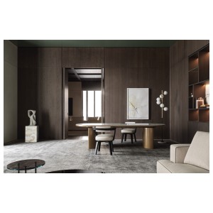 The introduction of a new ceramic finish, MDI (Mineral Design Innovation) by Inalco, brings a high-value surface crafted from the purest natural minerals, aligning with contemporary demands for eco-sustainability. Custom-made exclusively for Molteni&C, this finish is available in two refined colors: Merino White and Gray Brown. Additionally, a new mirror finish and an expanded selection of fabric finishes enhance Arial’s compositional possibilities, offering even greater personalization.