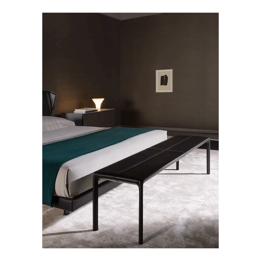 Azul Bench expresses the value of craftsmanship that is evident in the processing of raw materials of the highest quality, dictated by seams performed with care and passion. Powder coated steel structure completely covered in regenerated hide-leather in the colors of the Molteni&C range.
