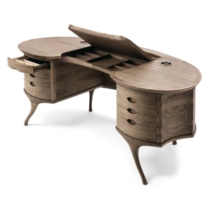 Bean: Iconic and elegant. The desk, designed by Roberto Lazzeroni in 1990, takes its name from the original bean shape. Refined in its aesthetic and technical details, it interprets the excellence of Made in Italy, which blends the designer’s vision, refined materials, hands-on knowledge, and industrial precision. It’s in the DNA of Ceccotti Collezioni create a product with a distinctive identity and high manufacturing quality, every time.