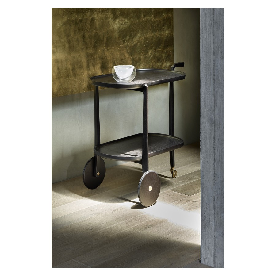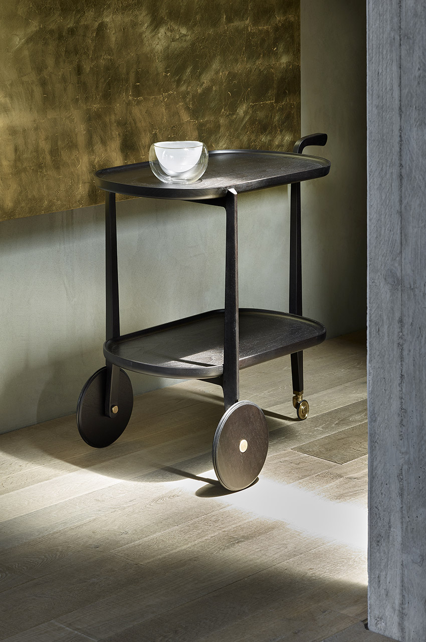 An iconic drinks trolley that is sure to steal the spotlight in the living or dining room. Bloody Mary was designed in 2019 by Giuseppe Casarosa. With its balanced dimensions, it combines light volumes with details that emphasise its character. For example, the handmade brass hardware adds a vintage feel to the overall design. The project underwent a long prototyping process in order to create a quality piece of furniture that combines functionality with a playful style.