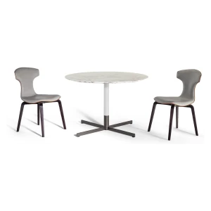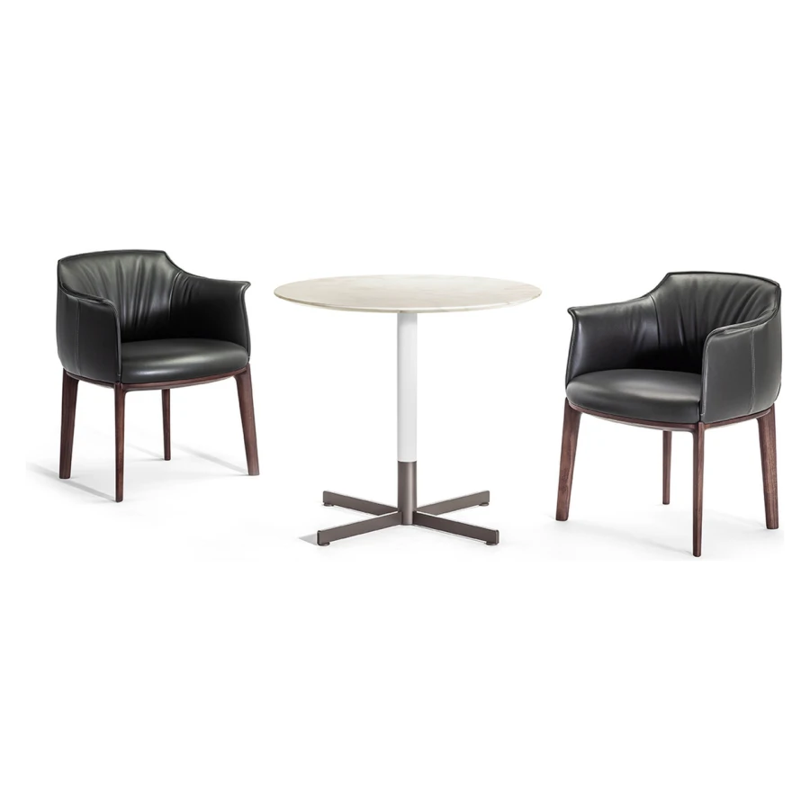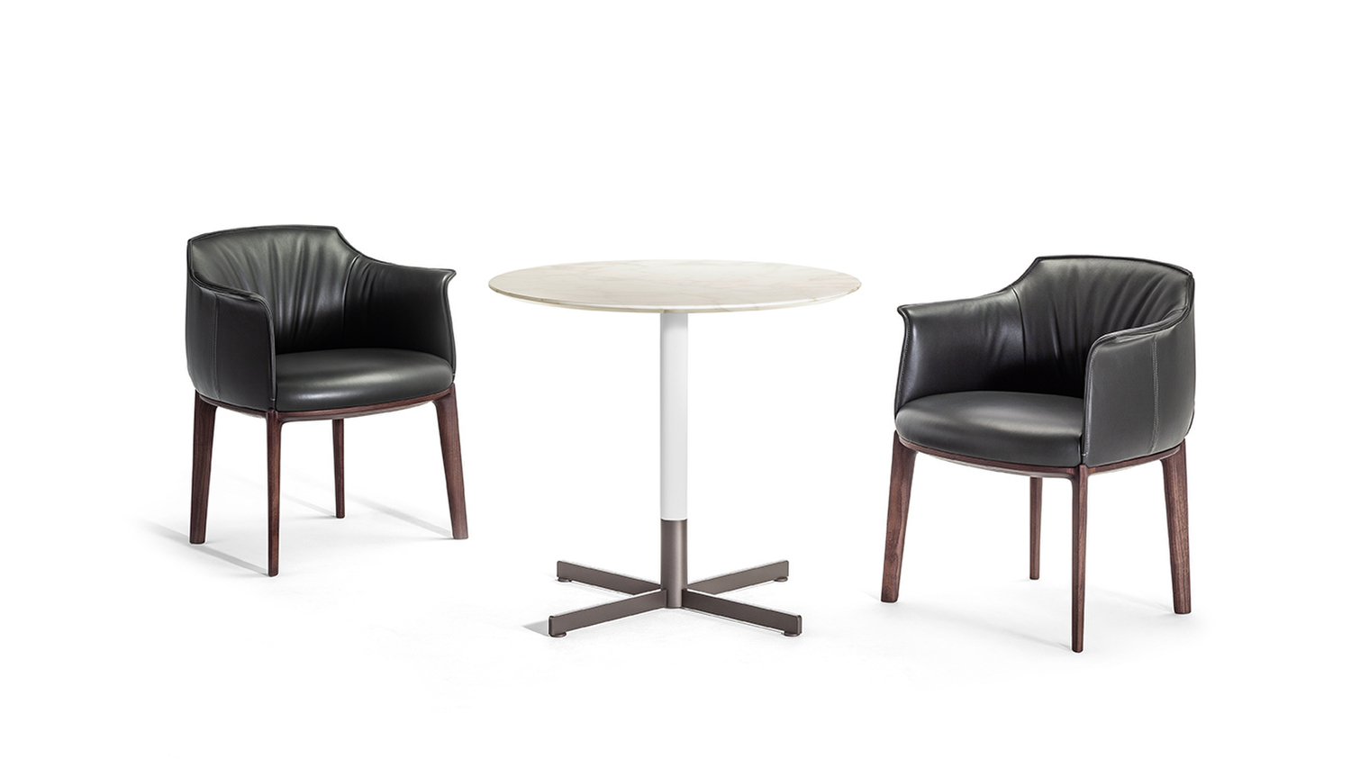 The family of Bob side tables, designed by Jean-Marie Massaud and produced by Poltrona Frau since 2006, has been further expanded with the Bob Bistrot line, a series of even more versatile solutions that cater for all requirements also in the hospitality sector. The Bob Bistrot side tables maintain all of the most distinctive features of the original series – outstanding functionality, refined materials and clean designs with the typical cross-shaped base – and come in six different variants notable for their original and sophisticated blends of materials.