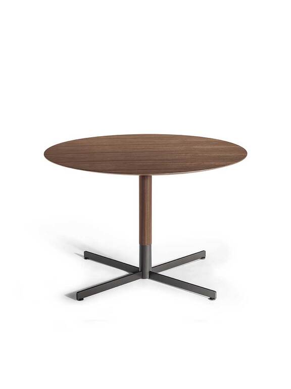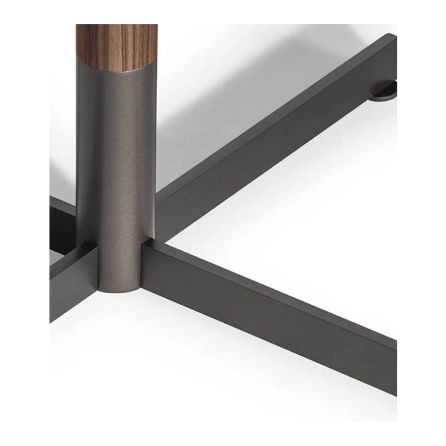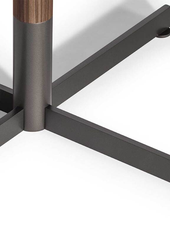 Top: Canaletto walnut, Collar: Canaletto walnut veneer, Base: burnished brushed steel