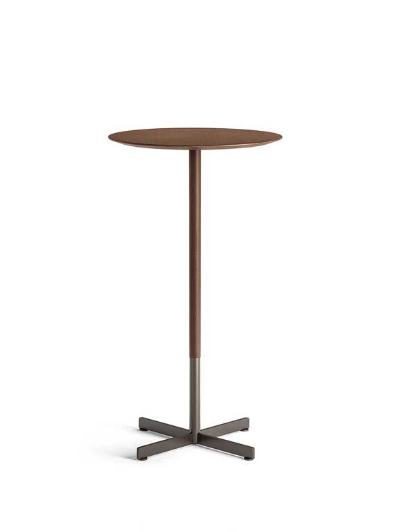 Top: Canaletto walnut, Collar: Canaletto walnut veneer, Base: burnished brushed steel
