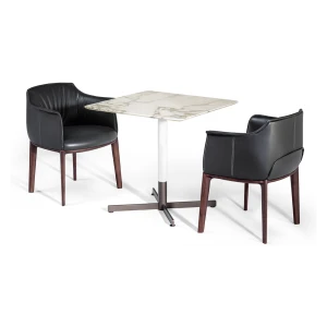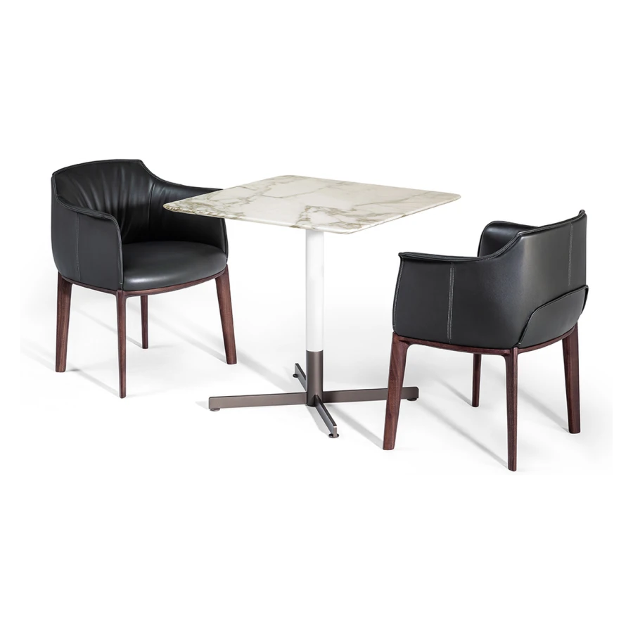 The family of Bob side tables, designed by Jean-Marie Massaud and produced by Poltrona Frau since 2006, has been further expanded with the Bob Bistrot line, a series of even more versatile solutions that cater for all requirements also in the hospitality sector. The Bob Bistrot side tables maintain all of the most distinctive features of the original series – outstanding functionality, refined materials and clean designs with the typical cross-shaped base – and come in six different variants notable for their original and sophisticated blends of materials.