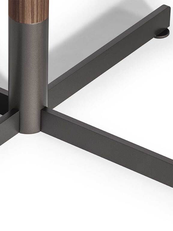 Top: Canaletto walnut, Collar: Canaletto walnut veneer, Base: burnished brushed steel
