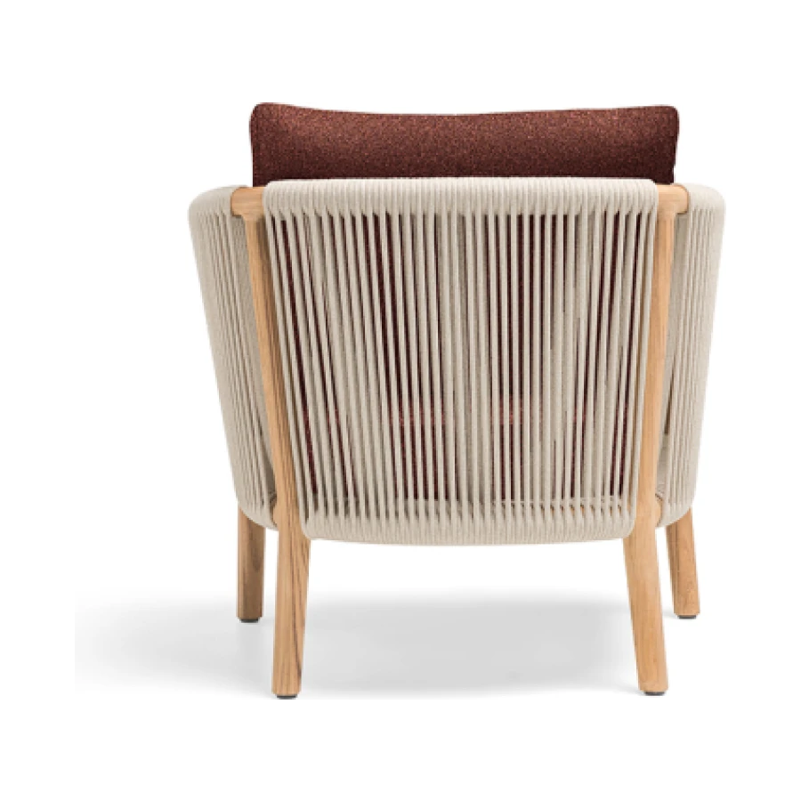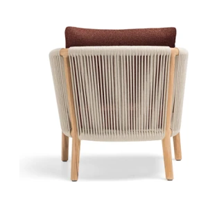 Crafted with meticulous attention to detail, the Boboli chair showcases a solid teak wood frame and seat, perfectly capturing the fusion of nature and design embodied by Molteni&C Outdoor Collection. The backrest, woven by hand using polypropylene fiber ribbons in ecru employs superior craftsmanship to create a natural effect.