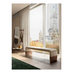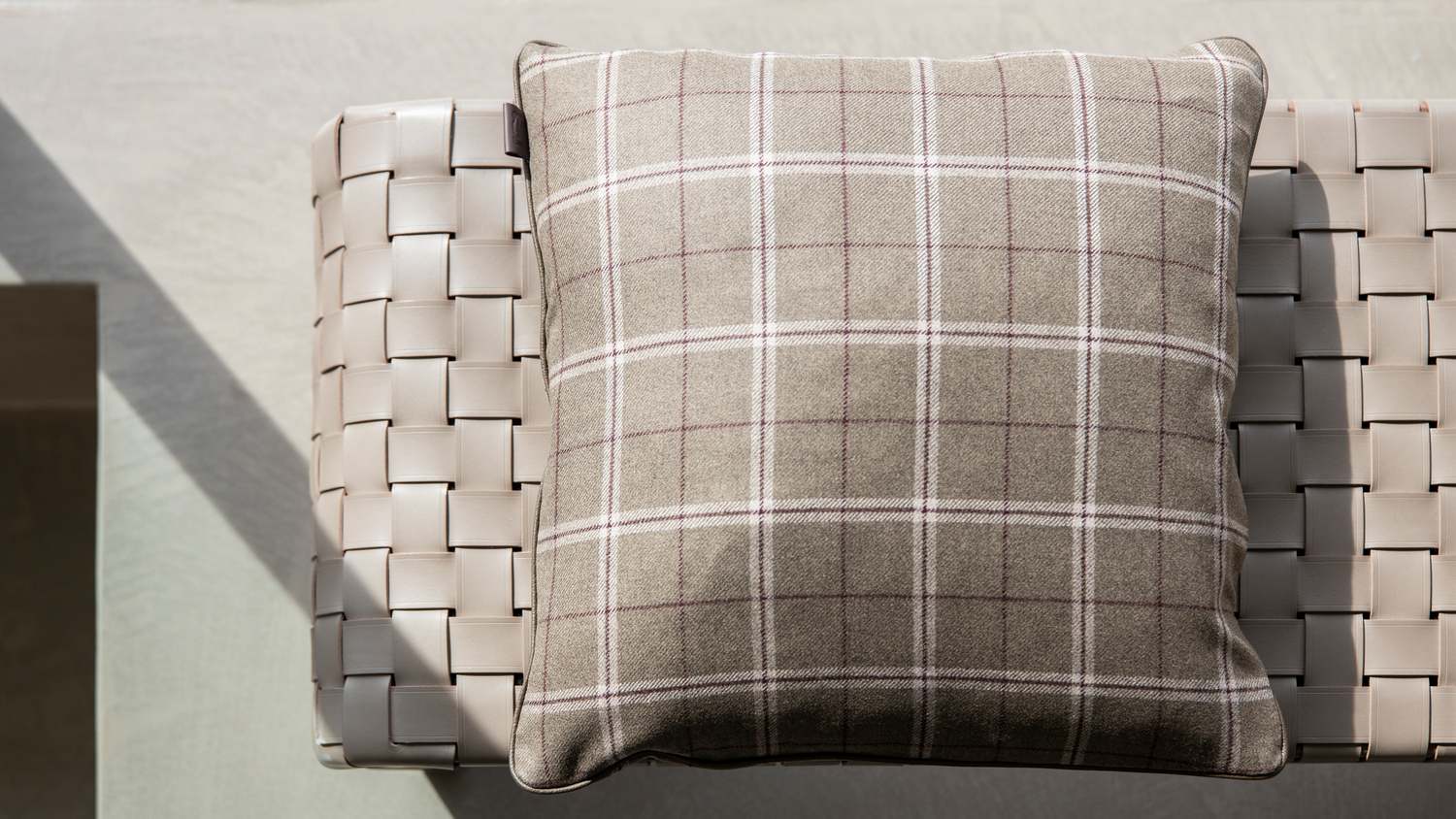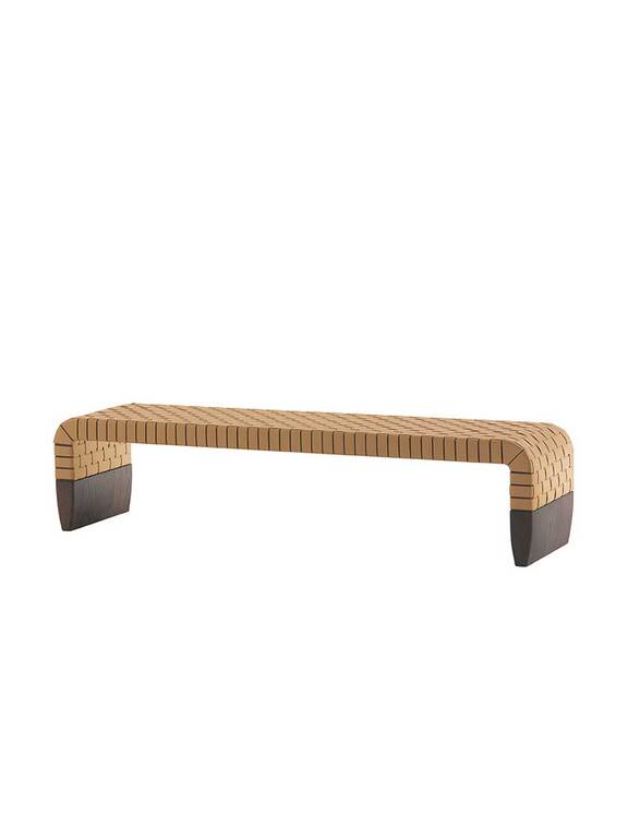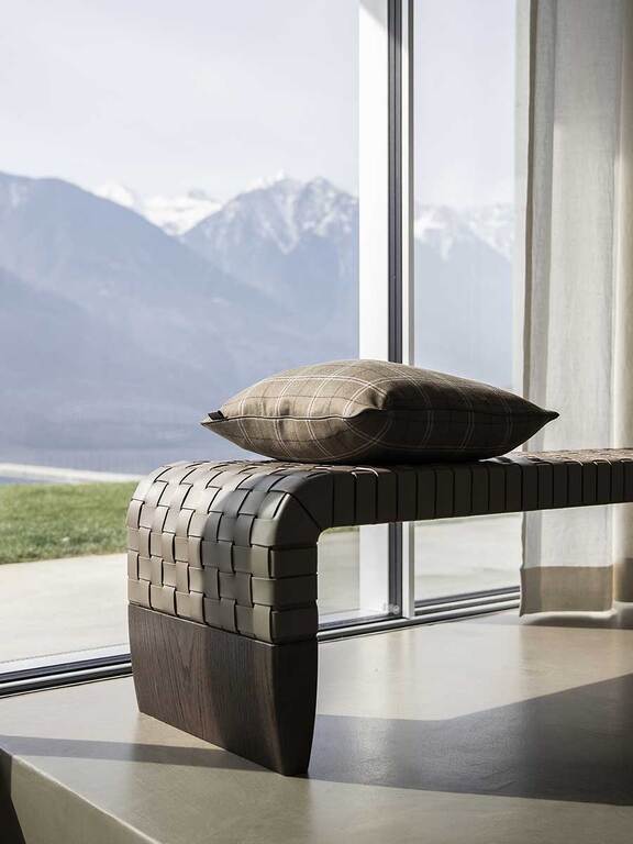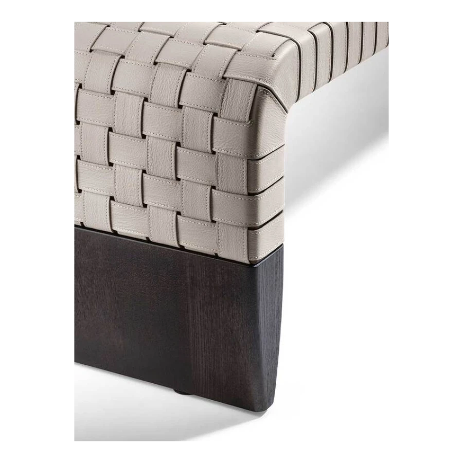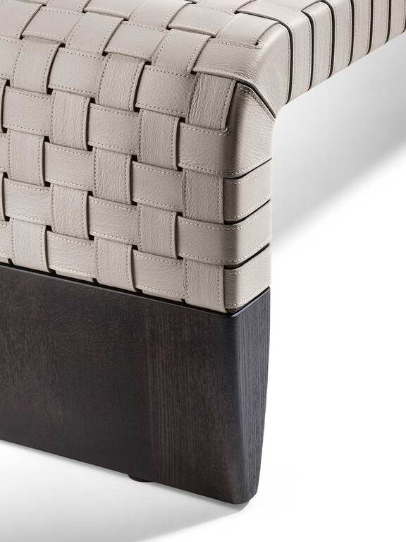 The simplicity of the design is fully consistent with the particular leather weave that adorns the seat. The wide 2 mm-thick straps, decorated right along their length with hand markings, create a motif that is both geometrical and tactile. The overall effect, linear and sophisticated, is extremely contemporary.