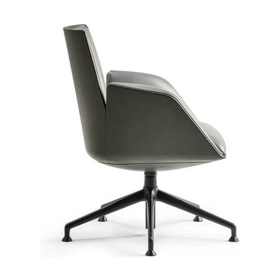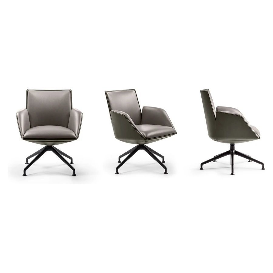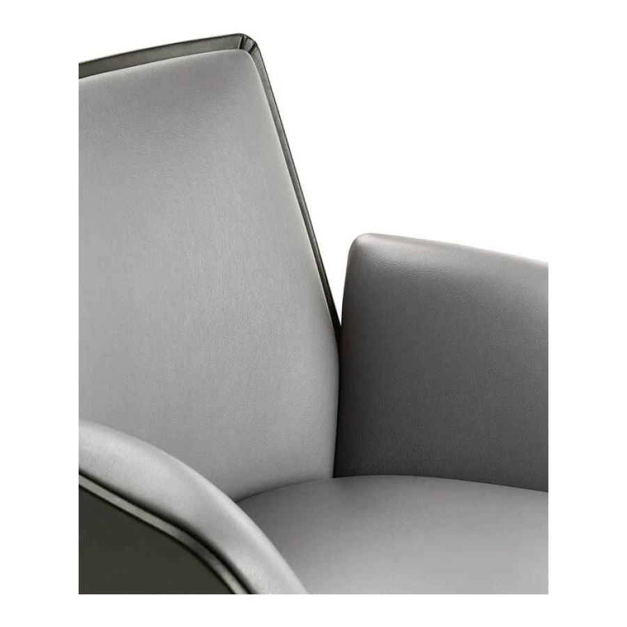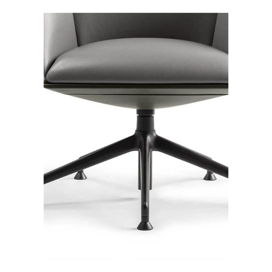 The ergonomics of the Cercle office chair have been studied in particular depth. The synchronised mechanism is integrated in the single shell and further optimised by Poltrona Frau to offer high-quality comfort. The structure is made from polyurethane with metallic insert. The padding is in differentiated-density polyurethane foam for more comfortable areas and polyester wadding quilt.