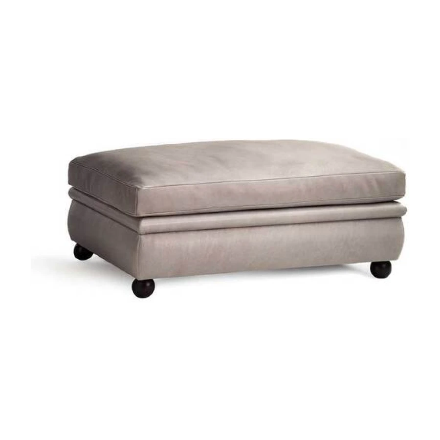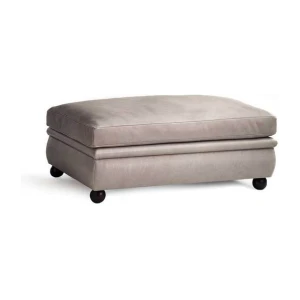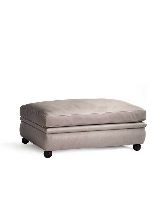 The Chester Line ottoman has a solid beechwood and poplar plywood frame, with a light polyurethane foam padding. Upholstered in Pelle Frau® leather, it can be matched with various combinations of Poltrona Frau fabrics. The pouf features aluminum feet in the classic spherical version, either in dark walnut-stained beech or lacquered black. The capitonné work on the covering is entirely done by hand, and the back is finished with a row of leather-covered nails.