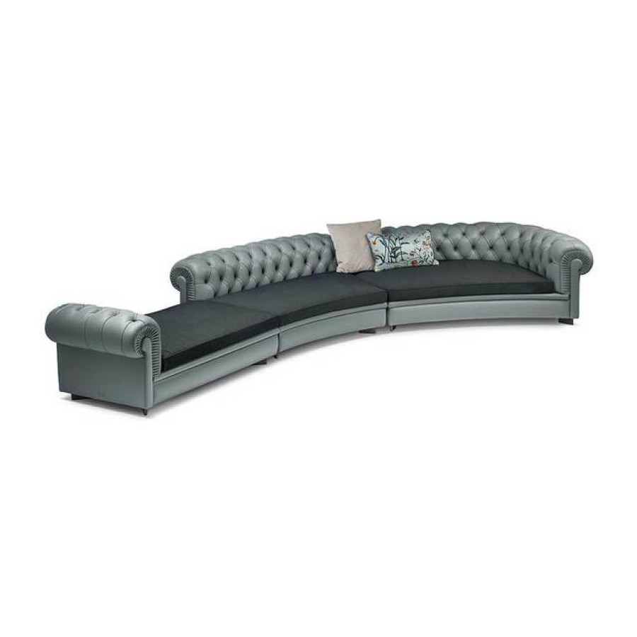 The supporting structure of the Chester Line sofa is made from solid seasoned beechwood. The seat, backrest and armrest spring system consists of hand-tied biconical springs on jute belts. The backrest and armrests are padded with hand-shaped vegetable horsehair. Seat cushion in goose down with the addition of a polyurethane foam stabilising insert.