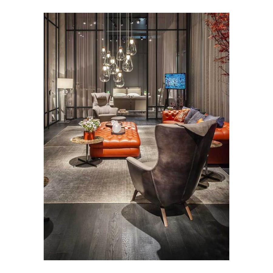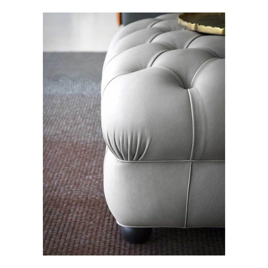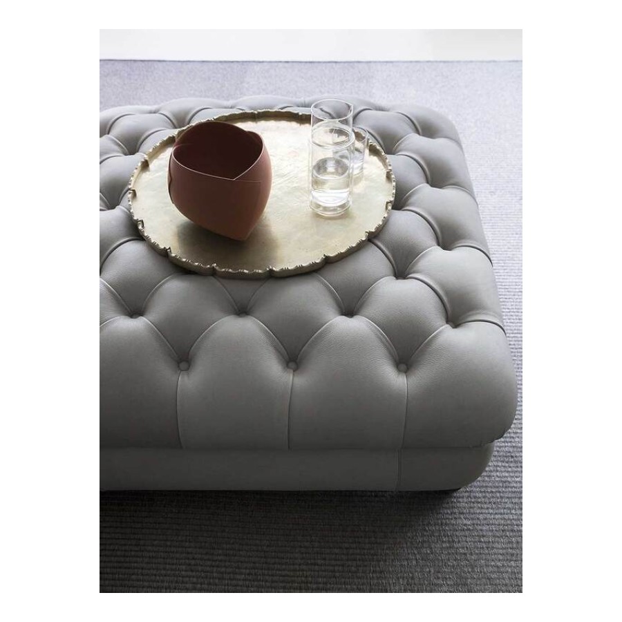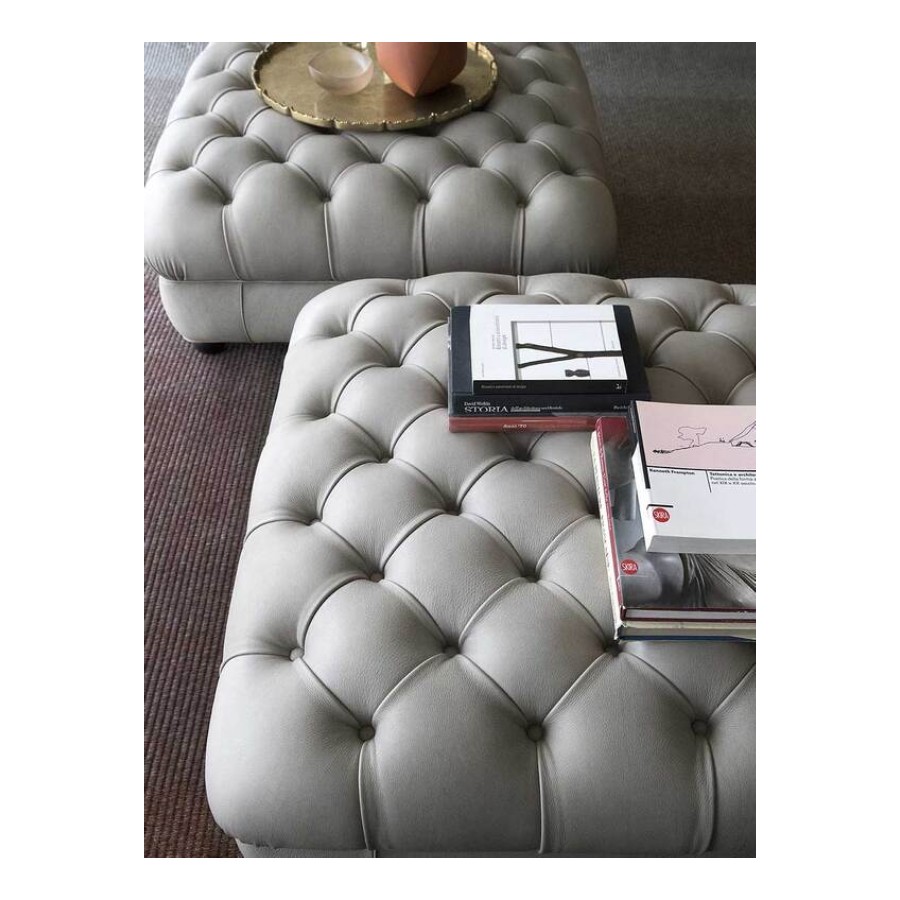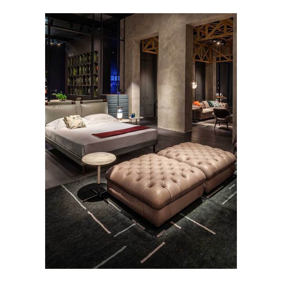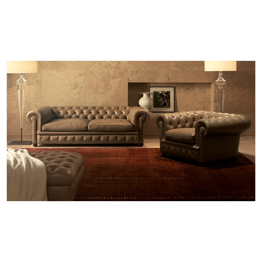However, the Chester One sofa maintains the features of the classic model designed by Renzo Frau: the famous capitonné processing, the curved armrest, the series of pins that refines the Pelle Frau® leather upholstery.