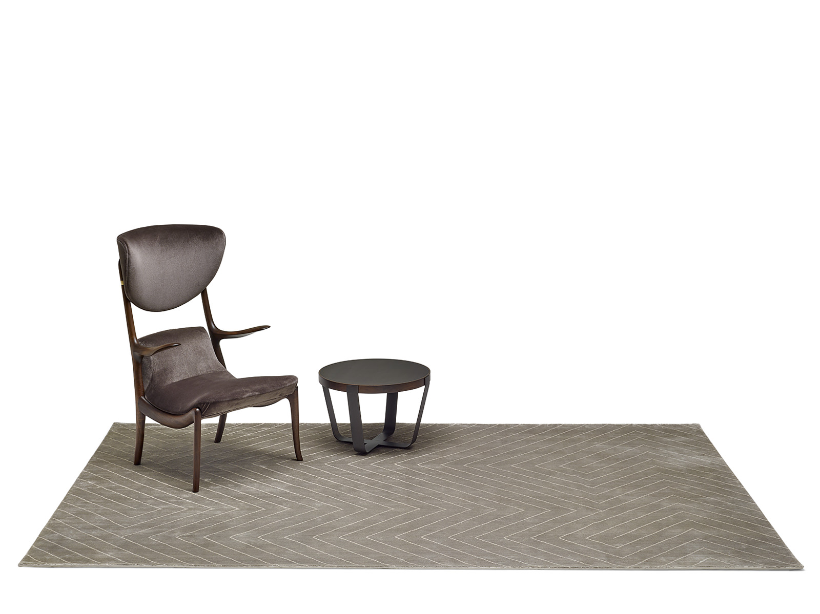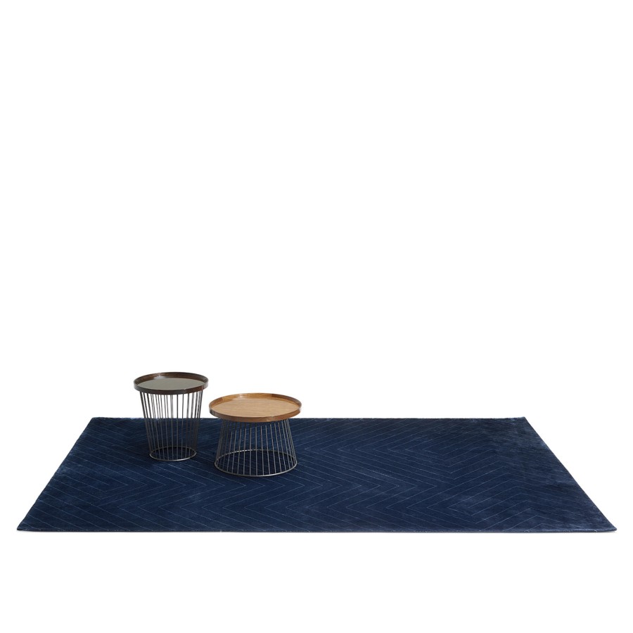 Chevron is a textile accessory that adds exclusivity to interiors. The rug, available in blue and beige, takes its name from the motif used in architecture and art, also known as herringbone. DRAW Studio offers its own personal interpretation. Combining the ancient art of weaving with a modern vision of design, it was created in 2018. The motif expands in time and space, the lines open and fold into themselves, creating an original compositional rhythm.