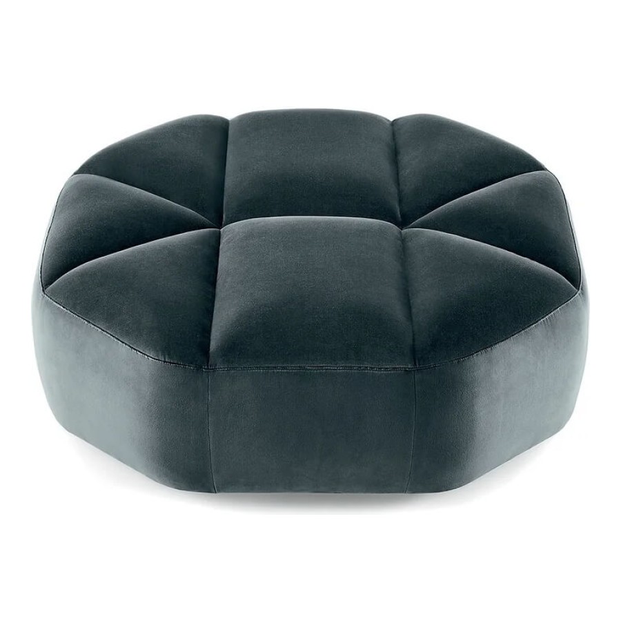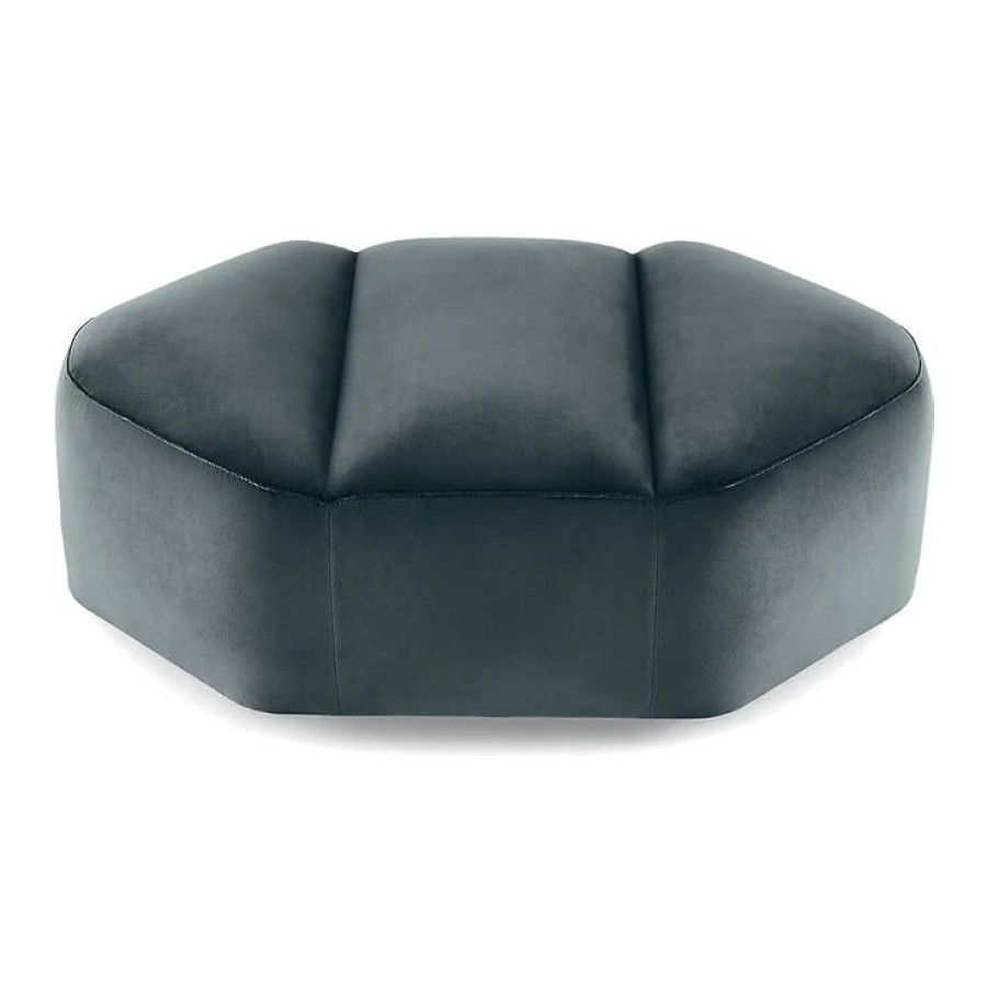 Pouffe in non-deformable foam polyurethane in different density and polyester fibre with wooden inside structure. Black lacquered wooden feet. Available covered by fabric or leather as per sample.