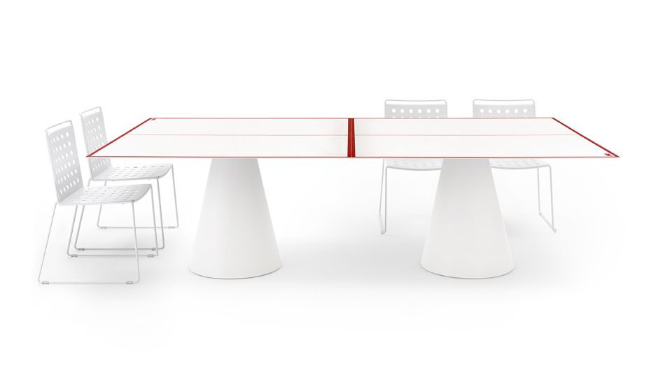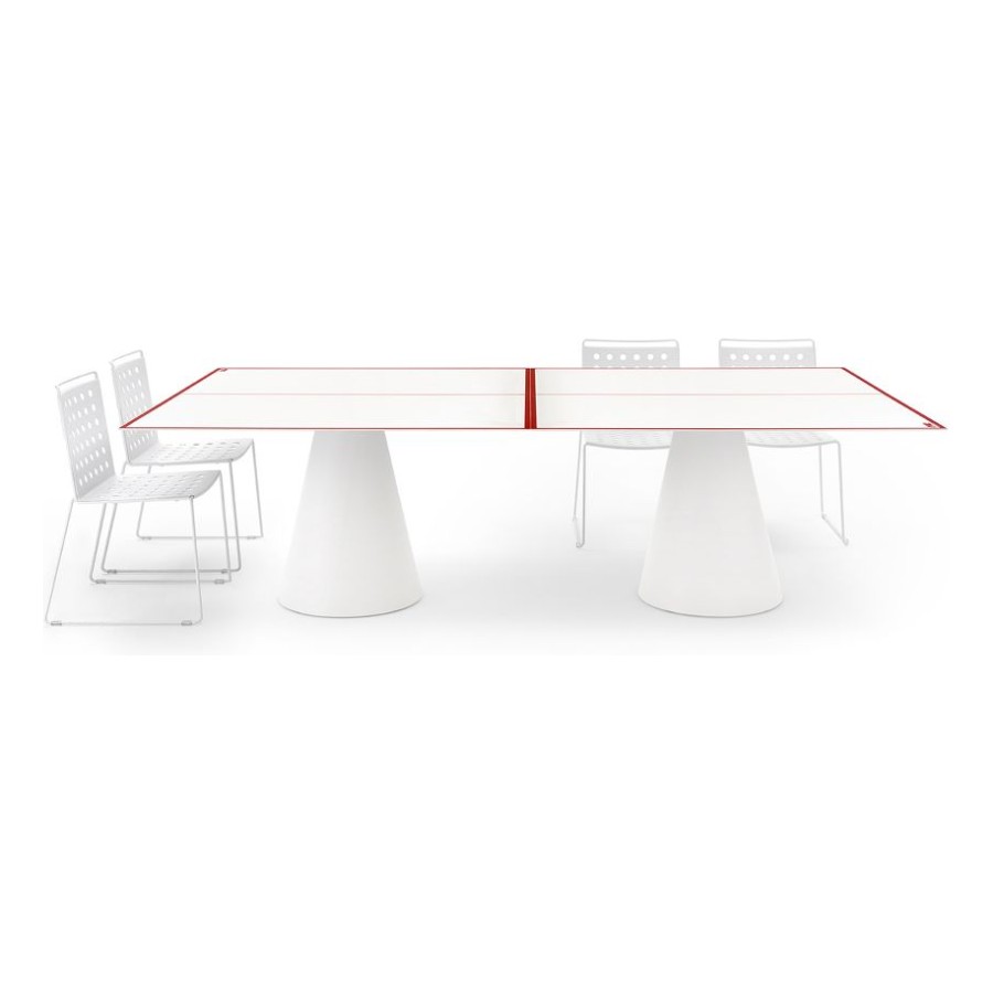 Two conic bases reshape the classic representation of the table tennis, isn’t it the first purpose of great design? A revolution that comes with a functional division in two elements, transforming, in case of need, the table tennis into two distinctive tables capable of welcoming eight people each. Inspired by the Dadaism Manifesto, Dada reinterprets the classic tenets of table tennis.