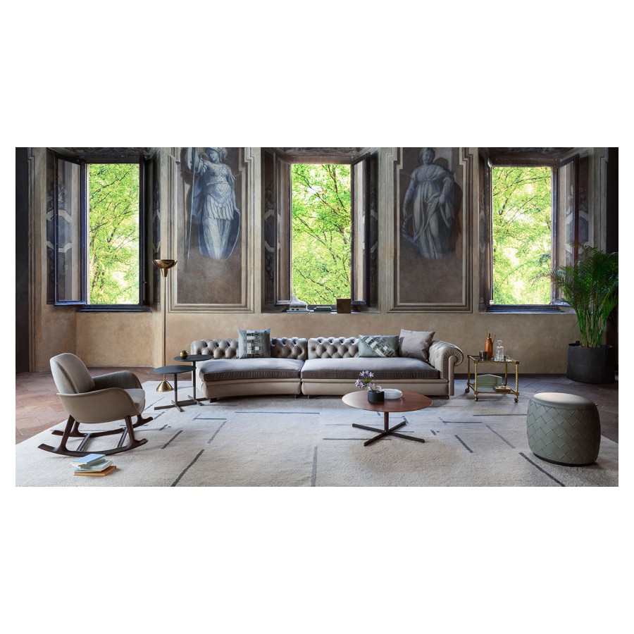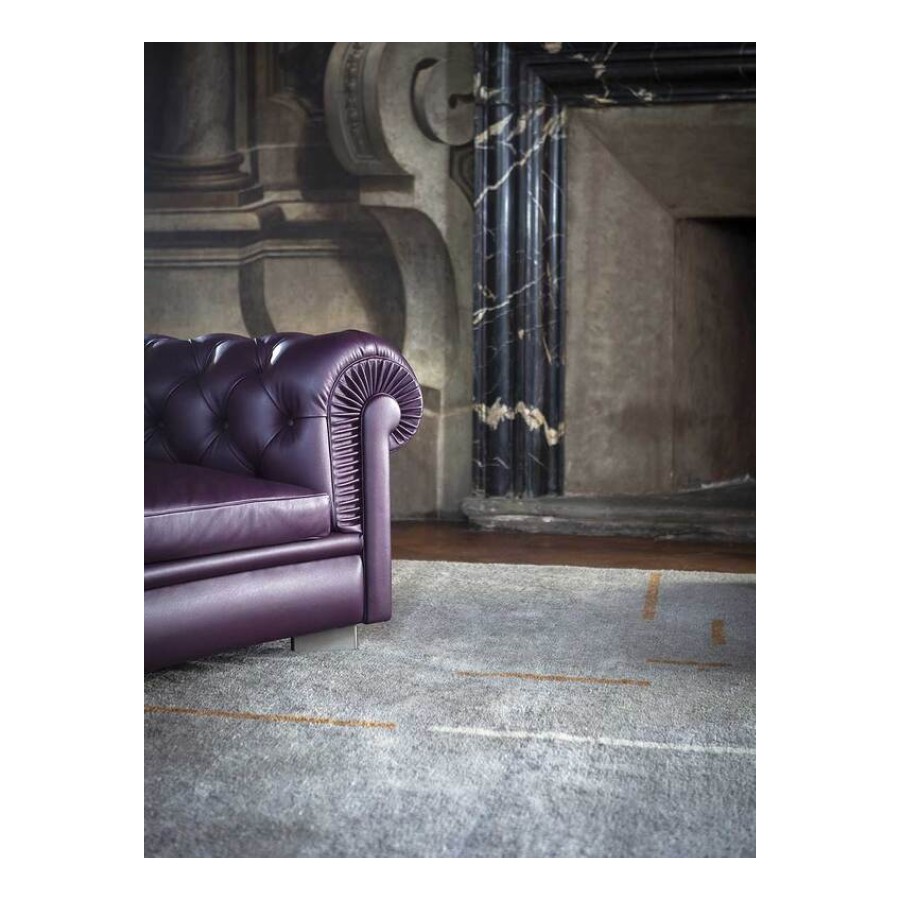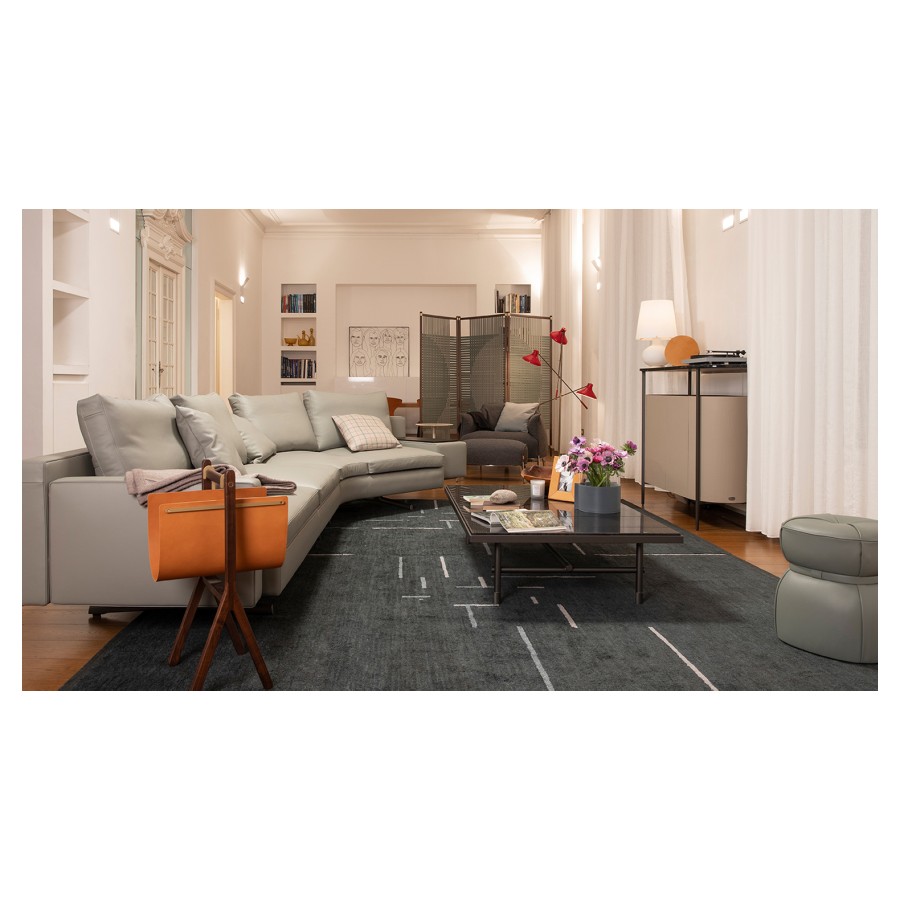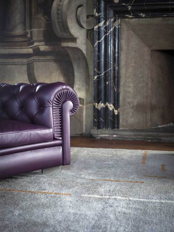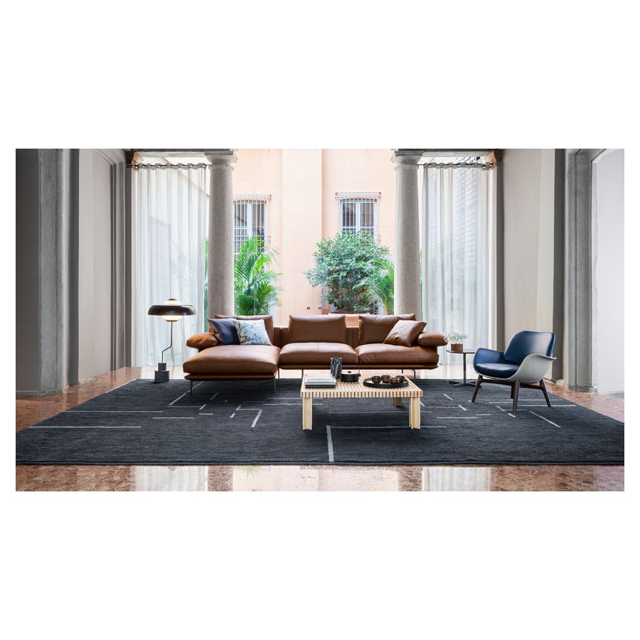 The collection is distinctive for the saddle-leather label hand-sewn on the back of the rugs and stamped with the Poltrona Frau logo. To keep the corners rigid, two strips of fabric are sewn onto the back of the rug and embroidered with Max Huber’s signature.