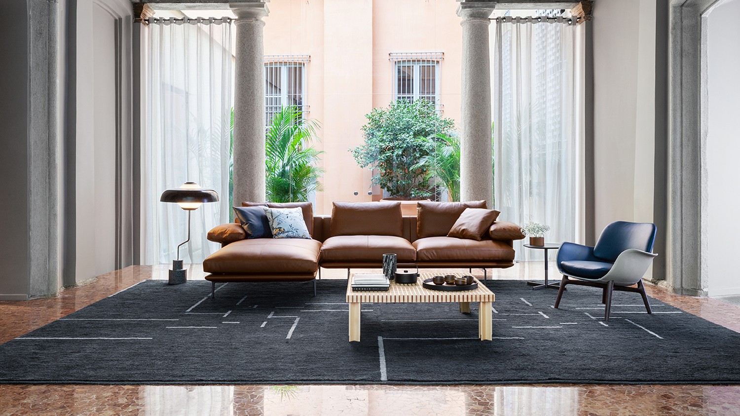 To mark the hundredth anniversary of the birth of Max Huber, Poltrona Frau pays homage to the famous Swiss artist and graphic designer with Billie and Dizzy, a collection of rugs based on drawings of two unproduced works taken from the archive and dating respectively to 1936 and 1947. The original designs have remained unchanged in terms of their proportions and the thickness of their lines and have simply been adapted to the dimensions of the rugs.