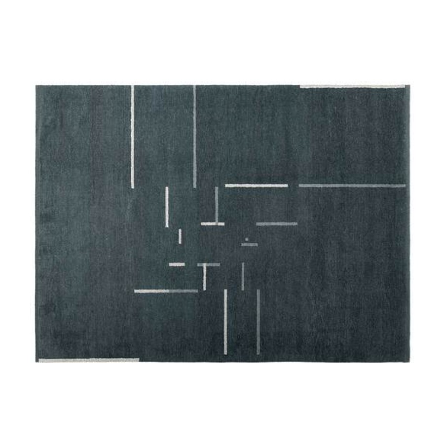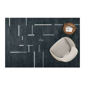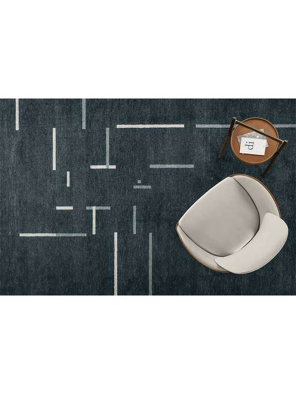Dizzy has a motif formed of small broken lines in two different colours positioned both horizontally and vertically. The strokes originate at the centre of the rug and form a radial effect stretching towards the external edge, gradually becoming longer and thinner. The design is based on a musical score and therefore suitable for being presented in different variants and dimensions.