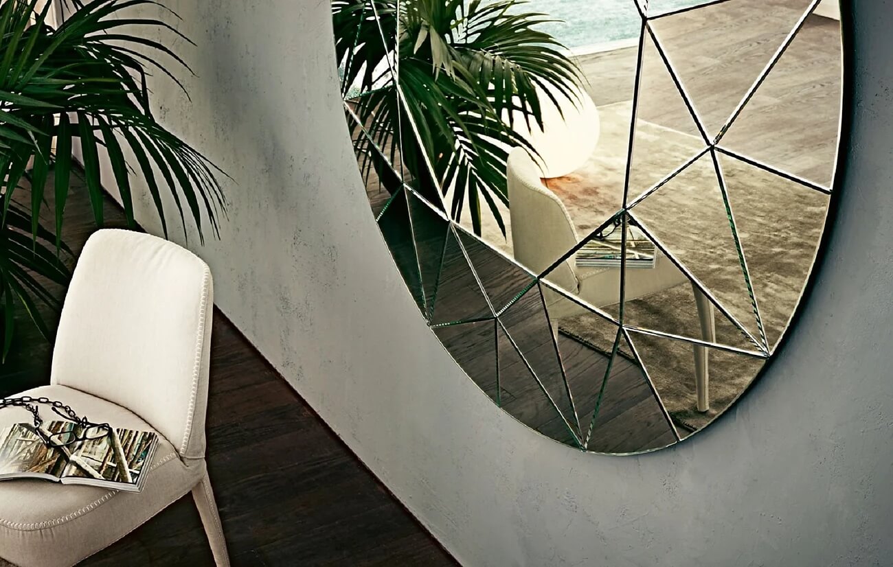 5mm hand polished mirror with octagonal central part and frame composed of 40 mirrors inclined on different levels.