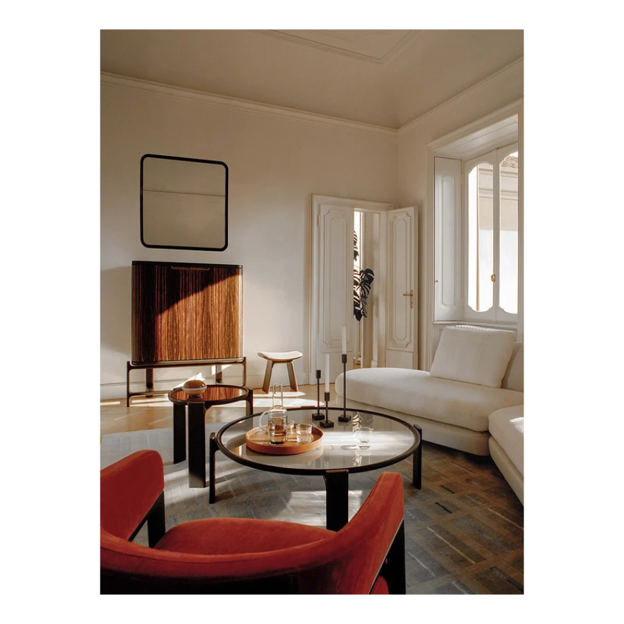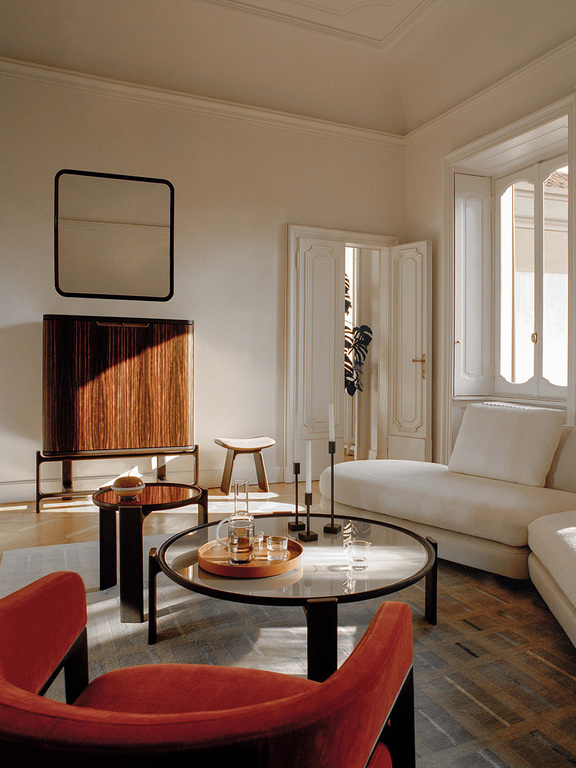 Poltrona Frau and Ceccotti Collezioni co-sign the DUO Collection, expressing their synergy in a shared design vision. Inspired by the Italian-style Dolce Vita, the products of the collection include luxury upholstered furniture with rounded shapes and exquisite wooden furniture for the living room. All designed by Roberto Lazzeroni, the objects encapsulate the savoir faire of the two Made in Italy excellences in the name of romanticism and timeless charm. The objects, with their retro flair, speak of the past and the present, of memory and of innovation.