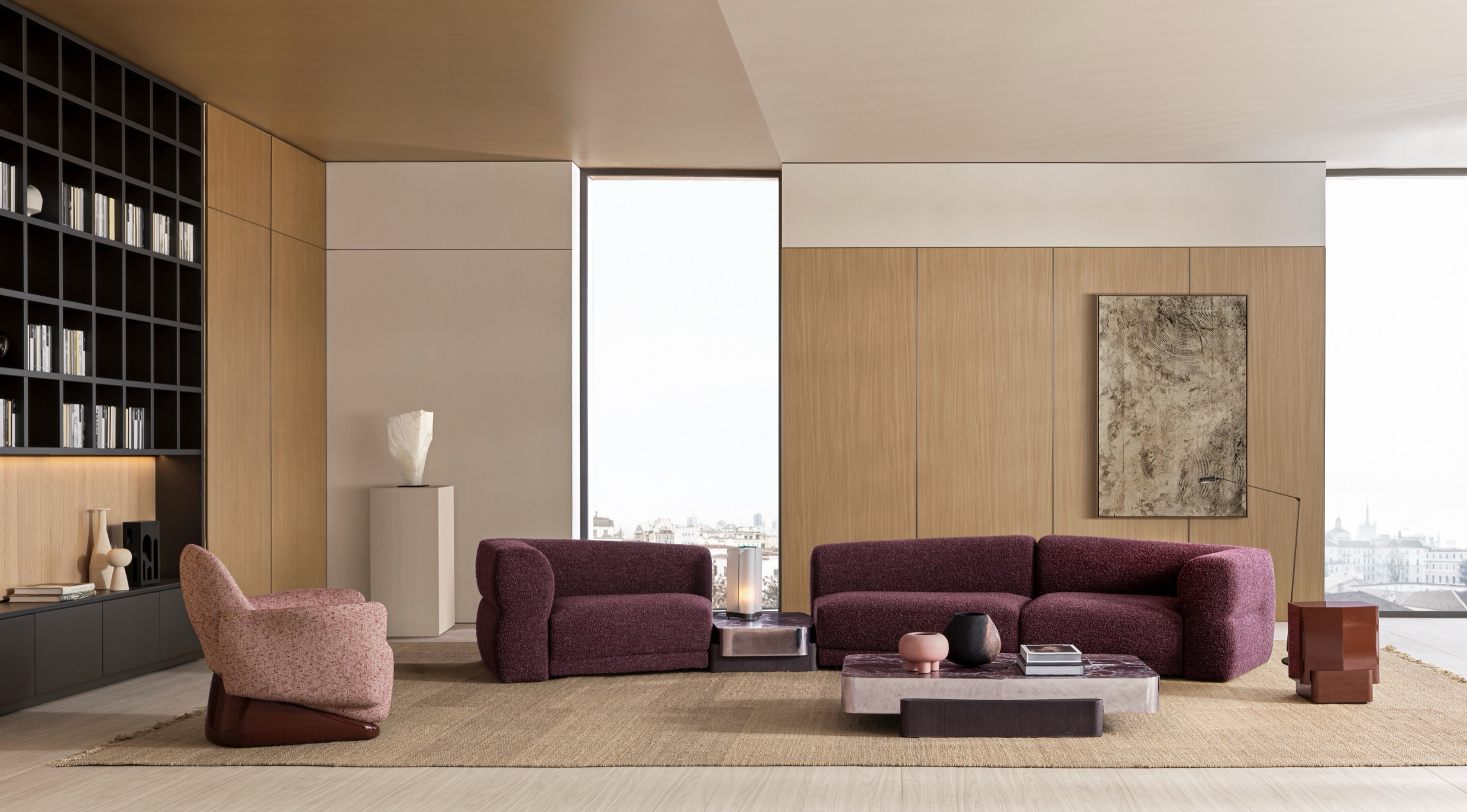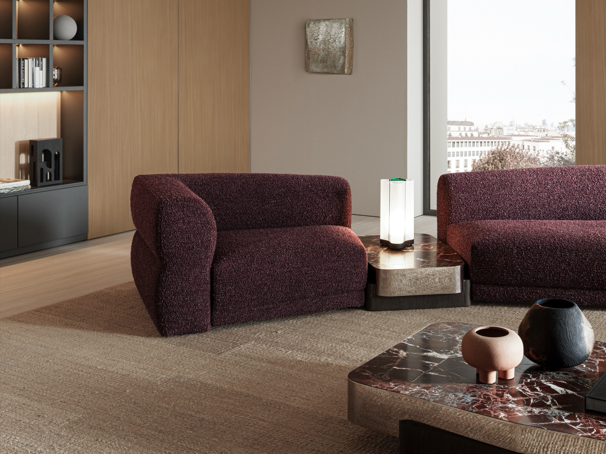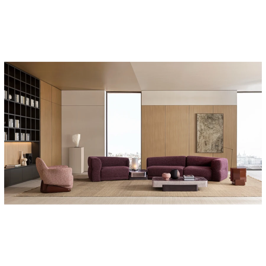 An expression of modular elegance, Emile by Christophe Delcourt is a dynamic sofa system designed to adapt to the evolving needs of contemporary living. Characterized by a sculptural silhouette, Emile features a refined backrest with fluid, shifting heights, creating a harmonious play of proportions within the space. Inspired by Lucio Fontana’s works, distinctive graphic marks trace its form, ensuring a striking presence from every perspective.