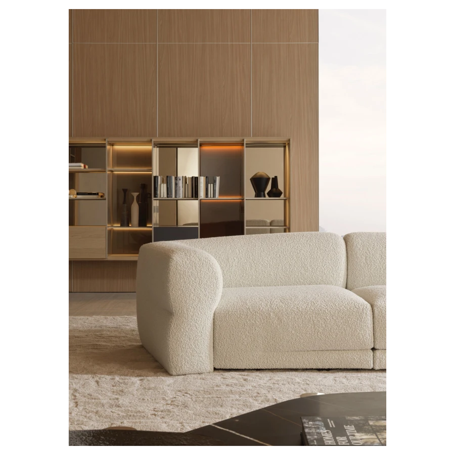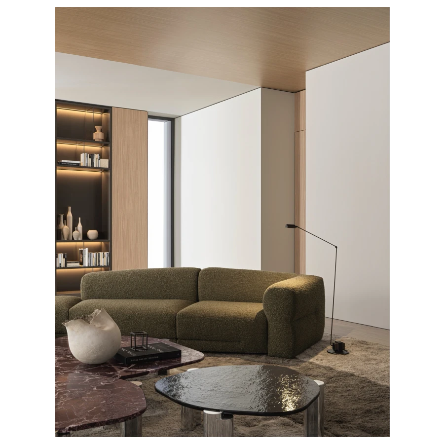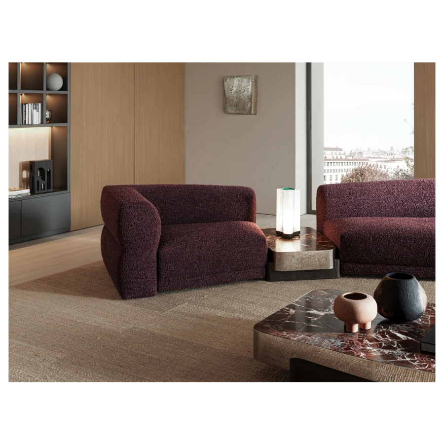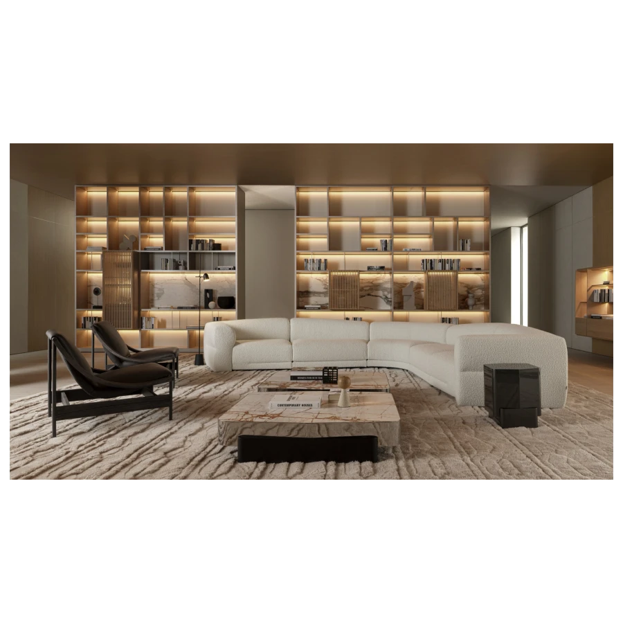 At its core, Emile embodies the concept of “divided but united.” Its modular nature allows for a range of configurations—linear, circular, or semicircular—each offering a seamless balance between intimacy and openness. The varying depths of the seating, combined with generous loose cushions, invite personalized comfort, catering to different postures and preferences.