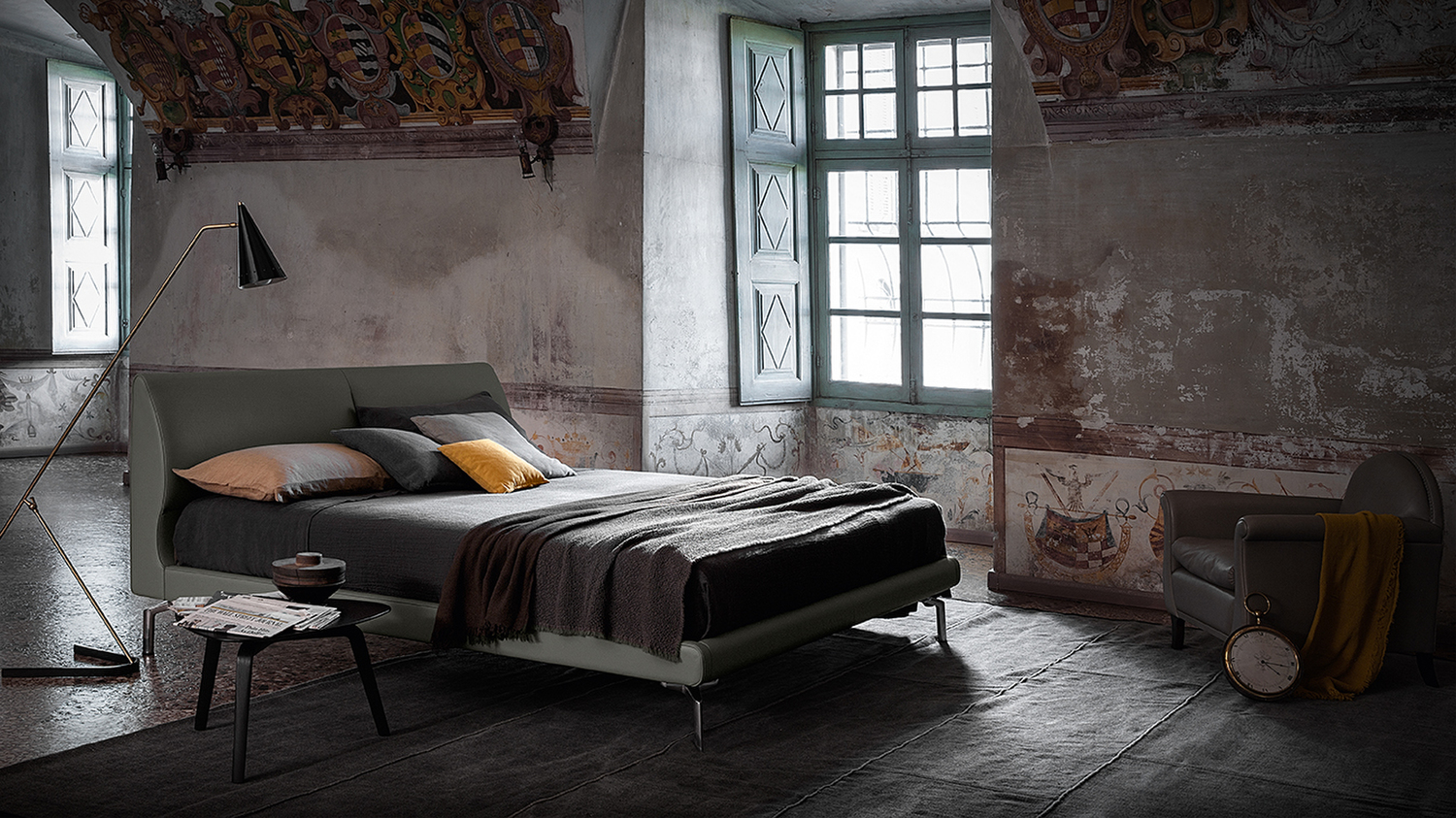 Soft and elegant lines. Comfortable design. The Eosonno bed designed by Luciano Pagani and Angelo Perversi has a slightly curved headboard which envelopes the mattress, almost embracing it.