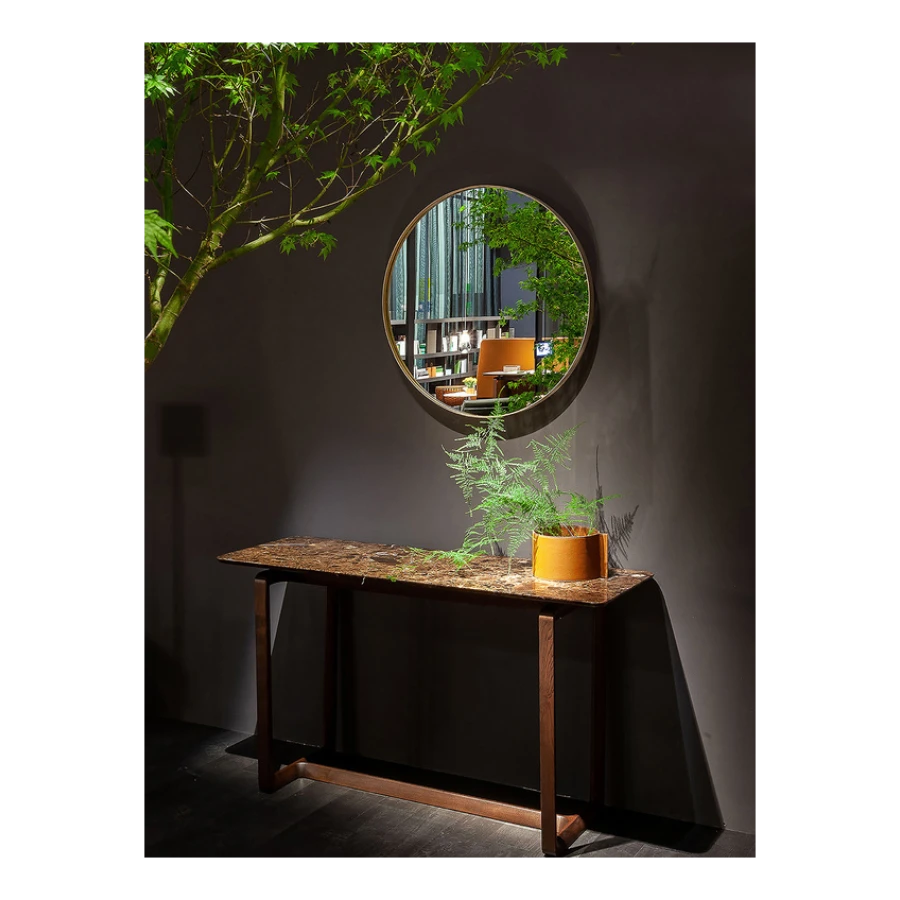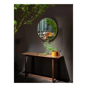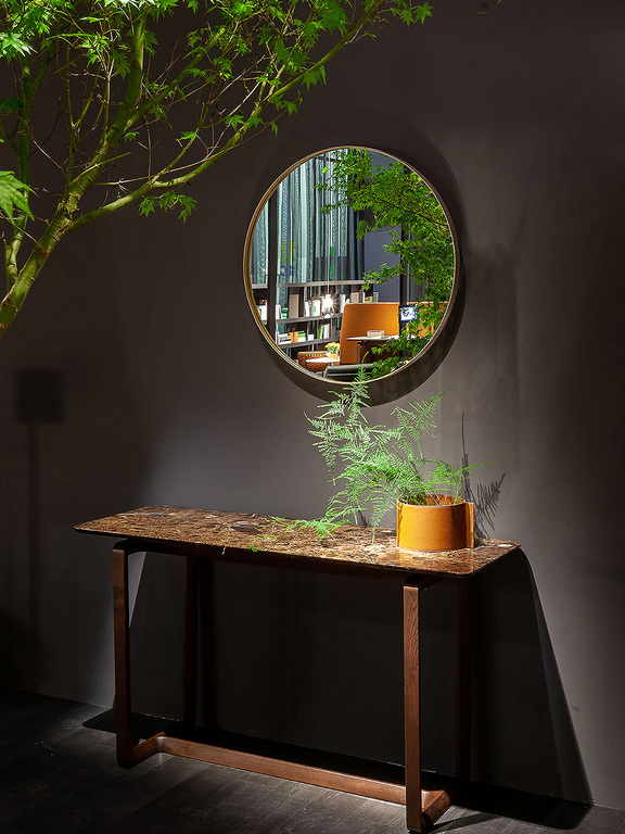 The Fidelio console table designed by Roberto Lazzeroni for Poltrona Frau catches the eye for the contrast between its remarkable visual lightness and the richness of the material combinations, a balance that makes it ideal for furnishing the contemporary living room.