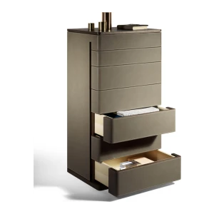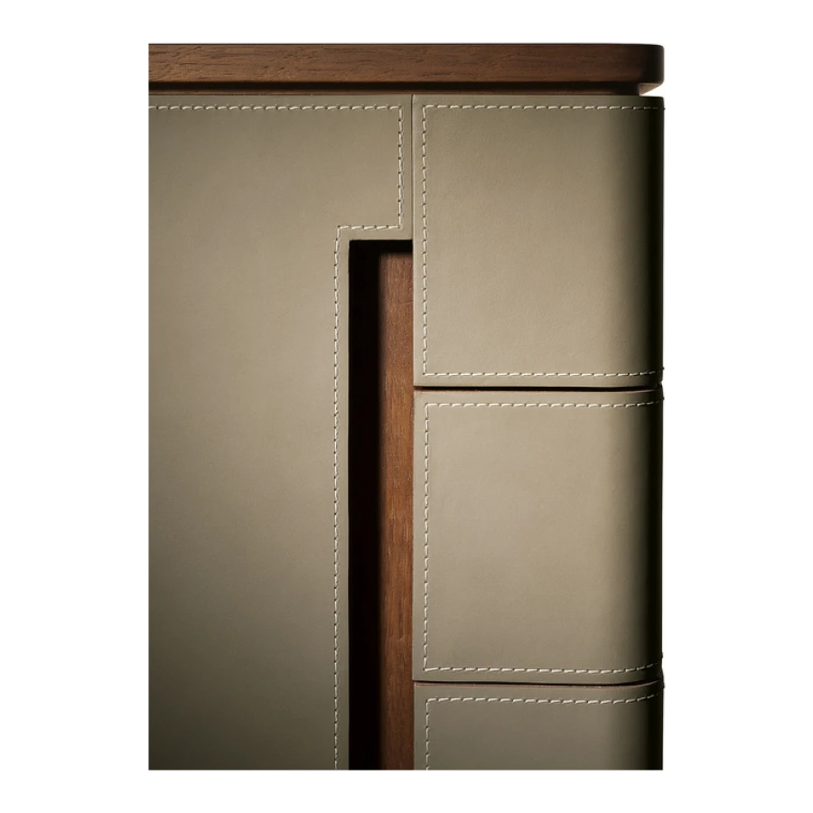 As with the rest of the Fidelio series, the designs are clean and the materials fine. Roberto Lazzeroni uses functional details to create highly distinctive aesthetic elements, like the recessed handles on the surfaces. There is also an intense contrast between the warm, dark tones of the saddle-leather and wood of the exteriors, and the luminous explosion of the natural maple that reveals itself in the drawers.