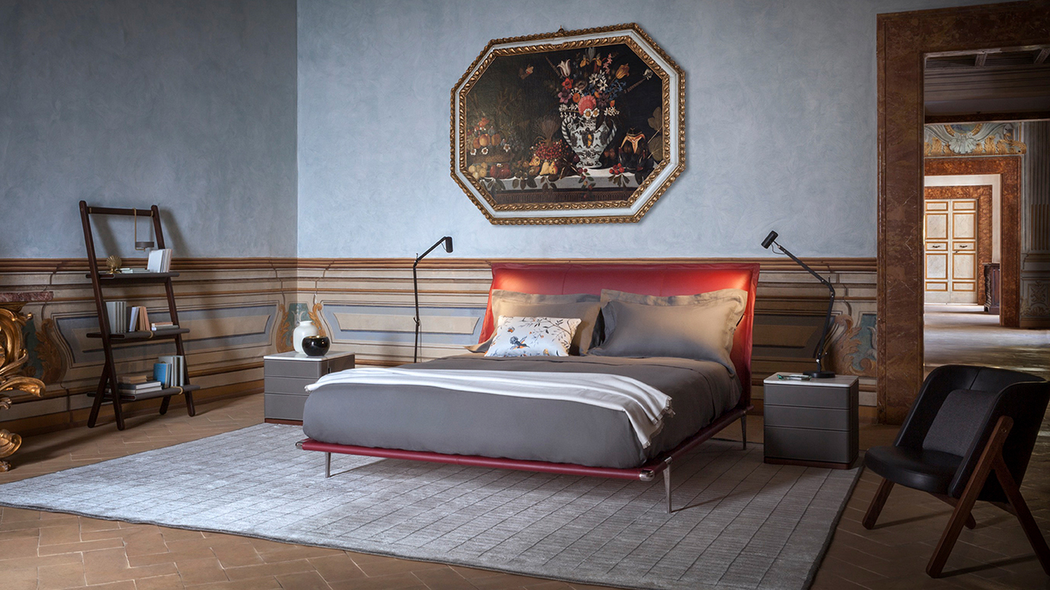 Fidelio Notte: chest of drawers, tall boy and bedside table for the bedroom. As with the rest of the Fidelio series, the designs are clean and the materials fine. Roberto Lazzeroni uses functional details to create highly distinctive aesthetic elements, like the recessed handles on the surfaces. There is also an intense contrast between the warm, dark tones of the saddle-leather and wood of the exteriors, and the luminous explosion of the natural maple that reveals itself in the drawers.