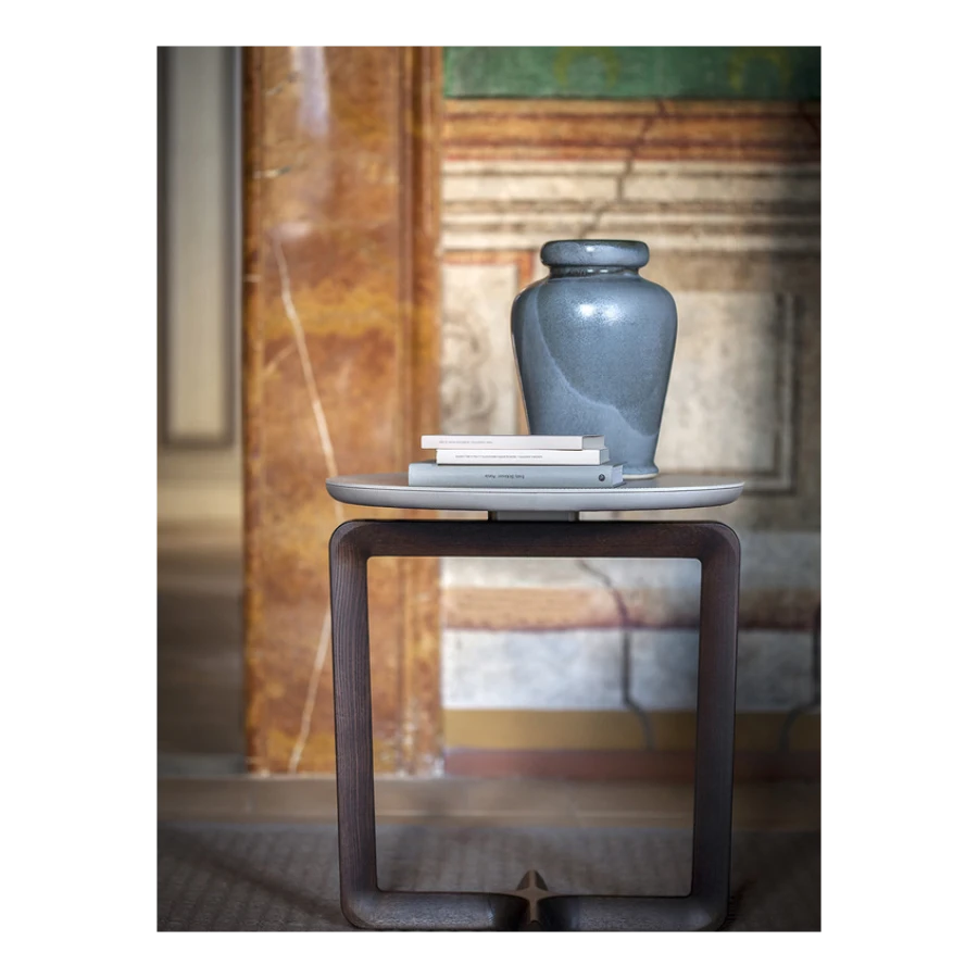 However, thanks to their clean and linear elegance, they are highly versatile and easy to combine with all of Poltrona Frau’s other furnishings. The Fidelio series also includes a bench, a lamp and cabinets of different sizes and with different functions. Designed by Roberto Lazzeroni, the Fidelio side tables have a recurring geometric feature that distinguishes the construction of the wooden structures, composed of expertly processed junctions and rings. In the Fidelio side tables, the restraint of the design and the painstaking precision of the lines exalt the purity of the materials.