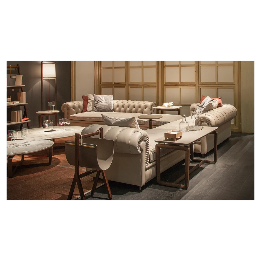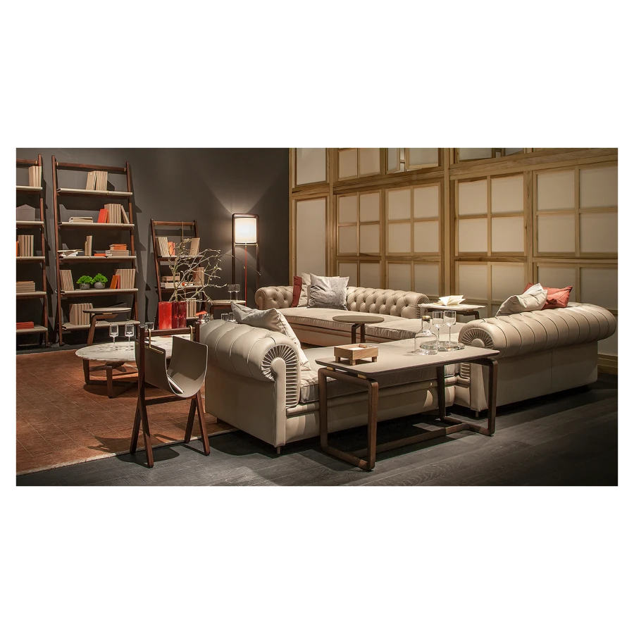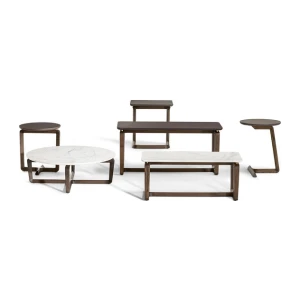The Fidelio side tables were designed as the ideal complement for the Chester line collection of sofas and armchairs. However, thanks to their clean and linear elegance, they are highly versatile and easy to combine with all of Poltrona Frau’s other furnishings. The Fidelio series also includes a bench, a lamp and cabinets of different sizes and with different functions. Designed by Roberto Lazzeroni, the Fidelio side tables have a recurring geometric feature that distinguishes the construction of the wooden structures, composed of expertly processed junctions and rings. In the Fidelio side tables, the restraint of the design and the painstaking precision of the lines exalt the purity of the materials.