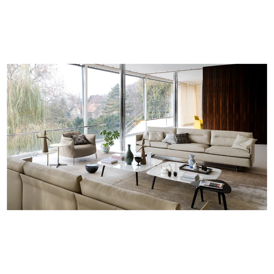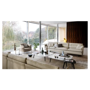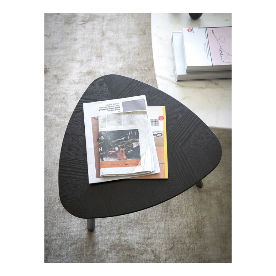 Roberto Lazzeroni designs a rectangle, two triangles, three squares, one of which with two table tops. The Fiorile side tables: soft, almost organic forms with rounded corners, each one different from the next, to combine freely creating unique geometric effects every time. The surfaces of the Fiorile are also set at different heights to make your space more dynamic and elegant.