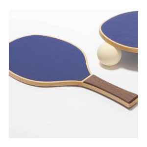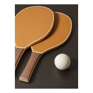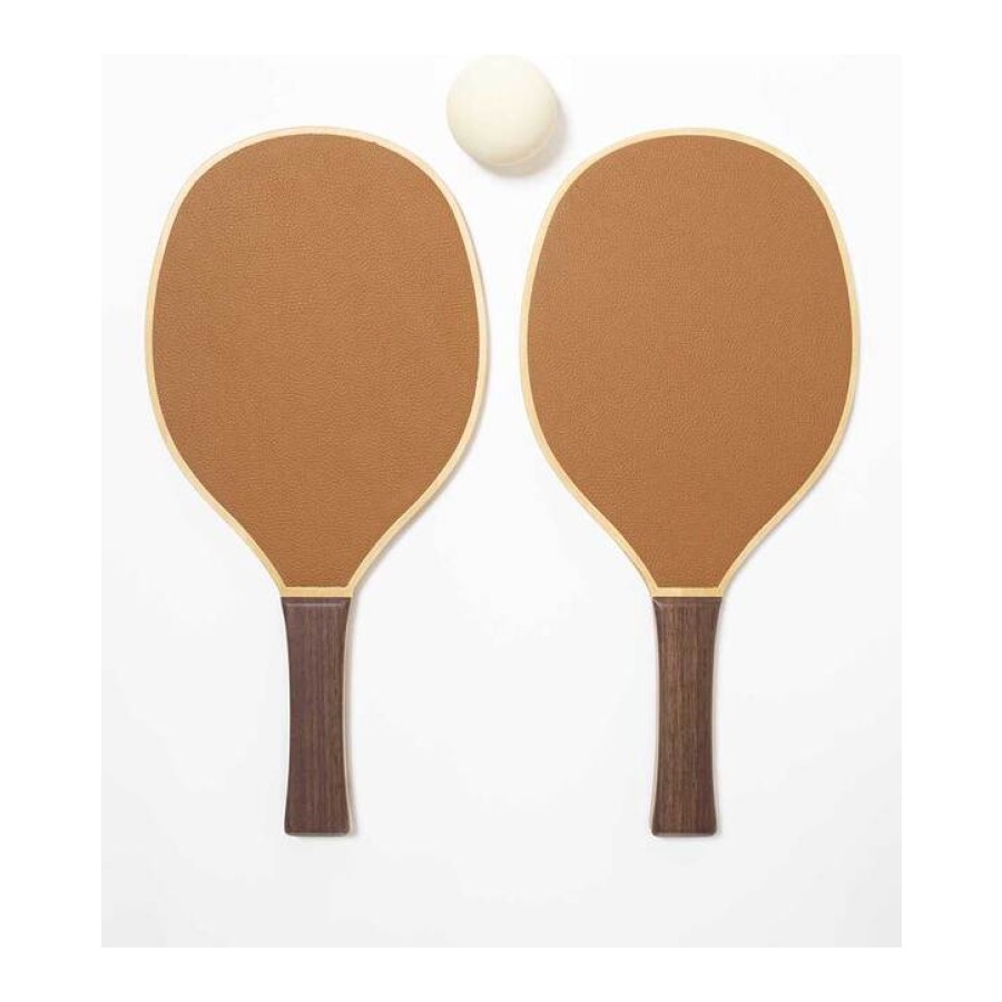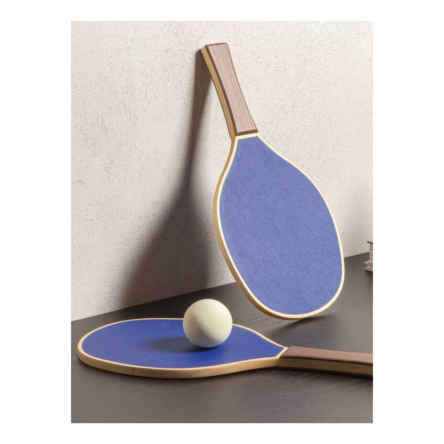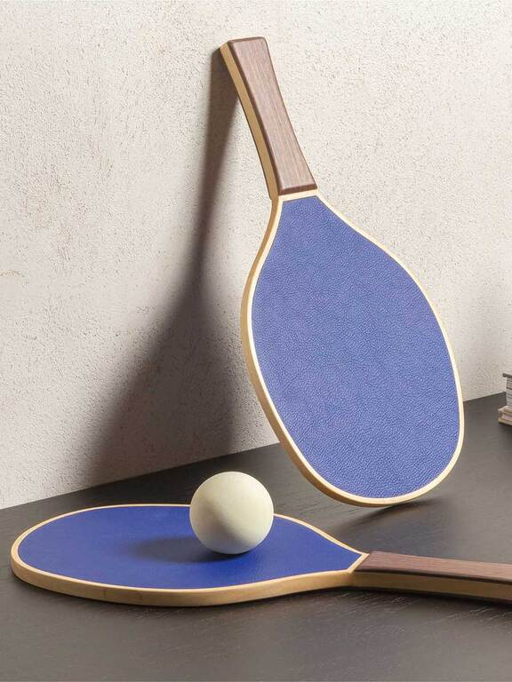 The pair of walnut and basswood rackets, partially upholstered in Pelle Frau® leather, is the perfect entertainment for keeping fit while having fun outdoors.