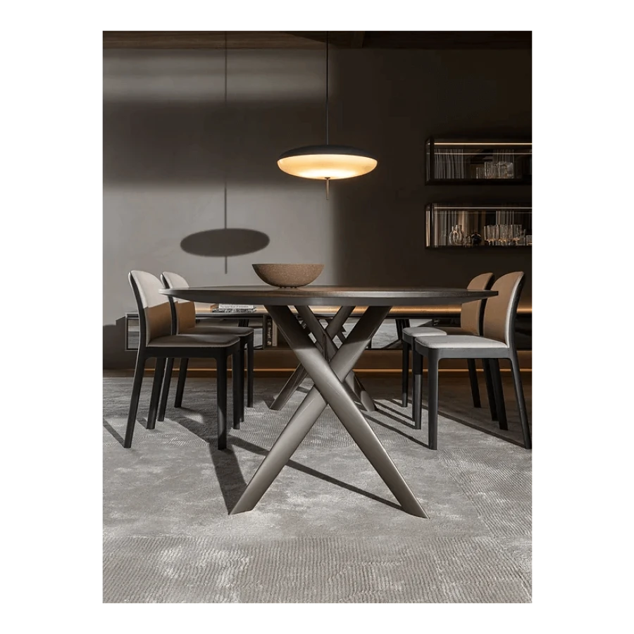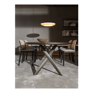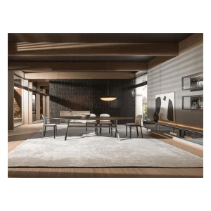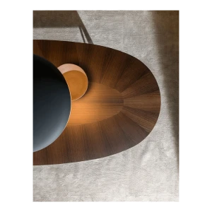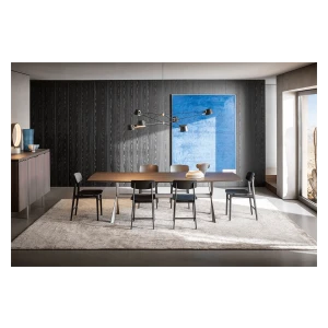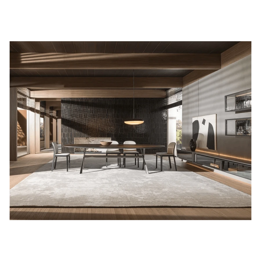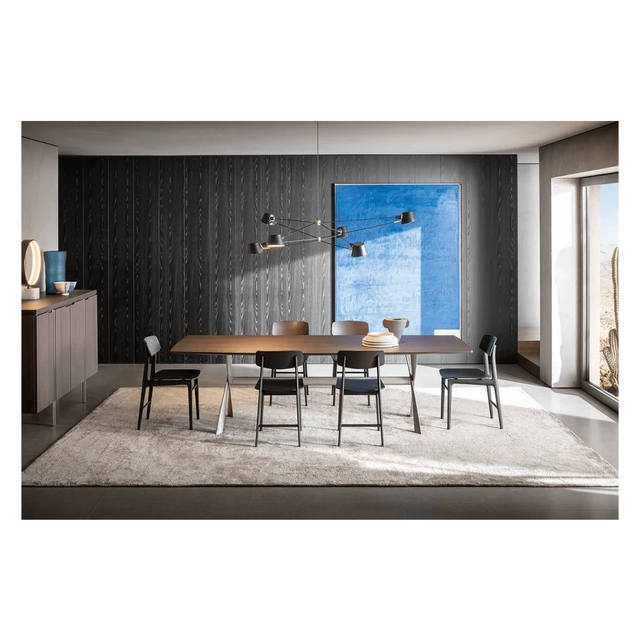 Gatwick, a table designed in 2019 by the architect Rodolfo Dordoni, has been renewed by providing the aluminium structure with a new Eucalyptus top featuring a sophisticated inlay design, in addition to the marble variants, already available in the Molteni&C collection.