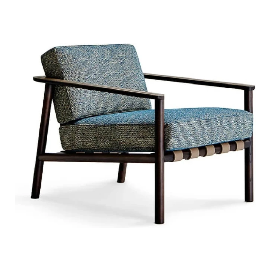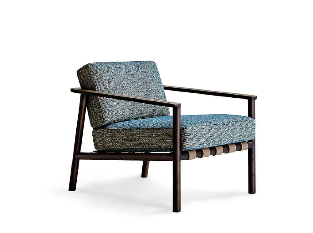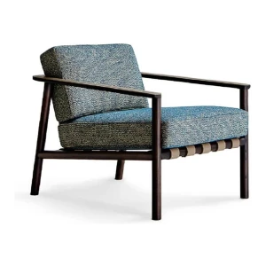 A small, low armchair, designed mainly for the hospitality sector, in hotel lobbies, bedrooms, lounges and bars, but also in the home as an occasional armchair set alongside impressive sofas. Classic frame made entirely of wood, where the backrest also acts as an armrest.