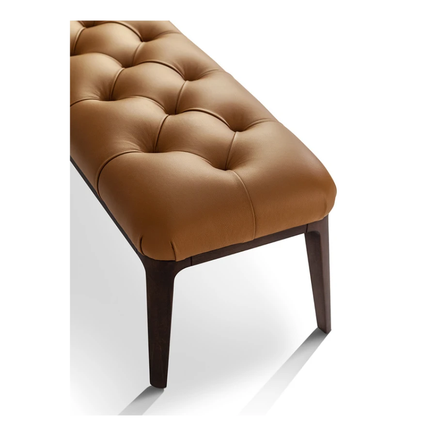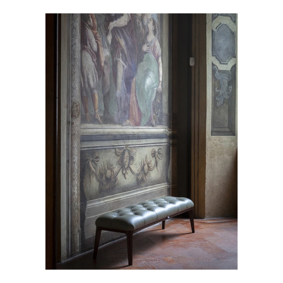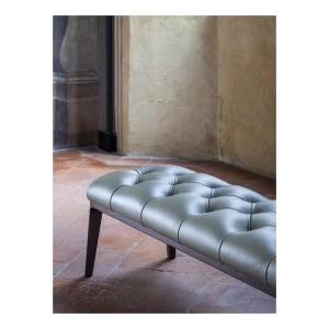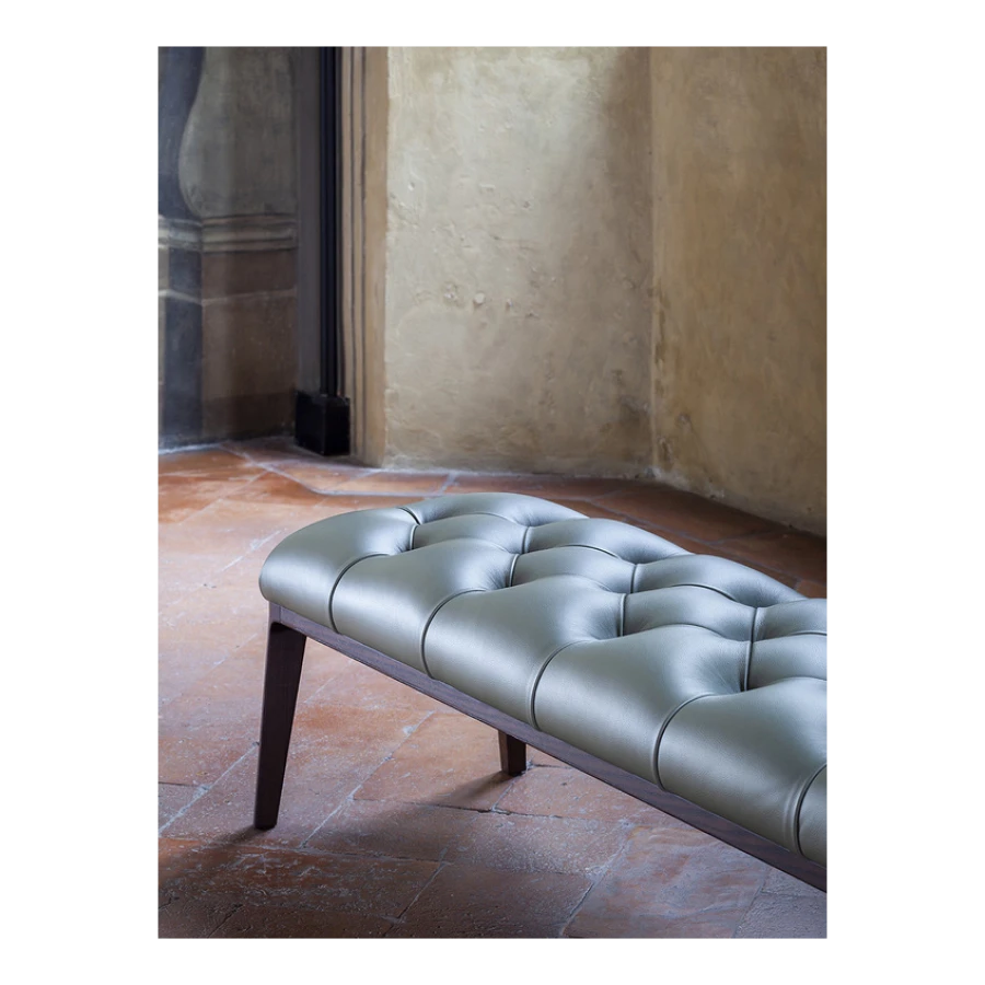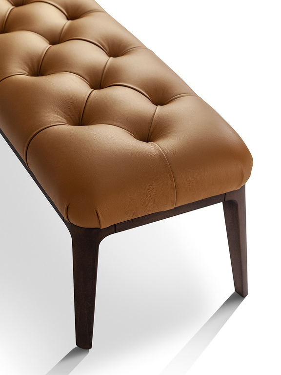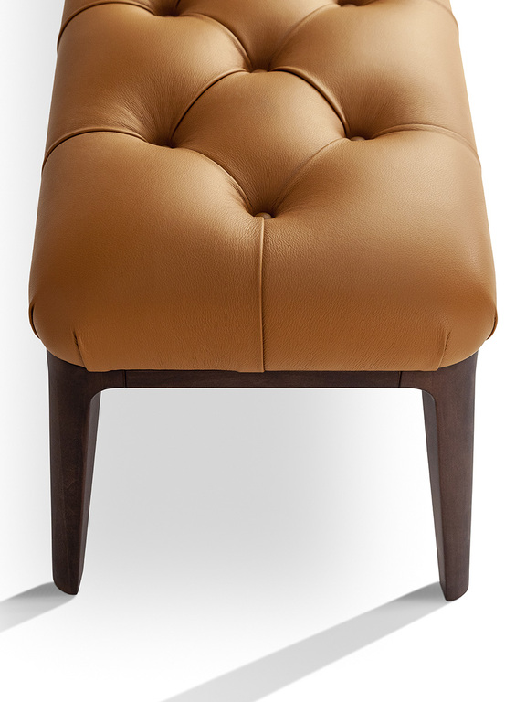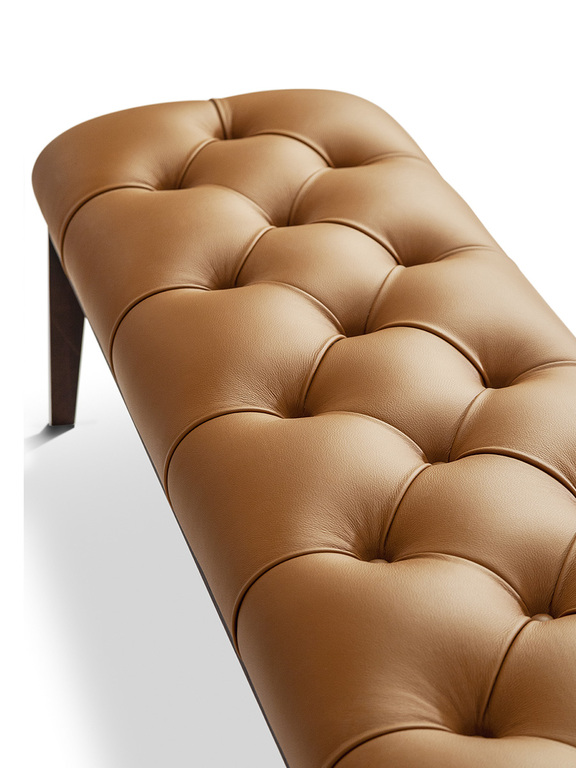 And it was the great musician’s piano stool that provided Roberto Lazzeroni with the inspiration to design Glenn, a pouf that can also be used as a bench or footrest. In reality, it was deliberately designed this way, acting as a natural complement for the new 2019 armchair. In fact, its soft Pelle Frau® leather seat is enriched with handmade detailing identical to that on the armchair’s backrest, the capitonné processing that has come to symbolise the quality and artisan expertise of the Poltrona Frau brand. The personality, great harmony and balanced proportions of the Glenn pouf make it an independent and versatile item of furniture that is at home in any setting, whether on its own or combined with other furnishings.
