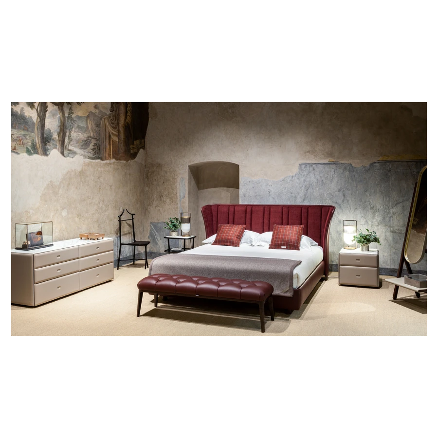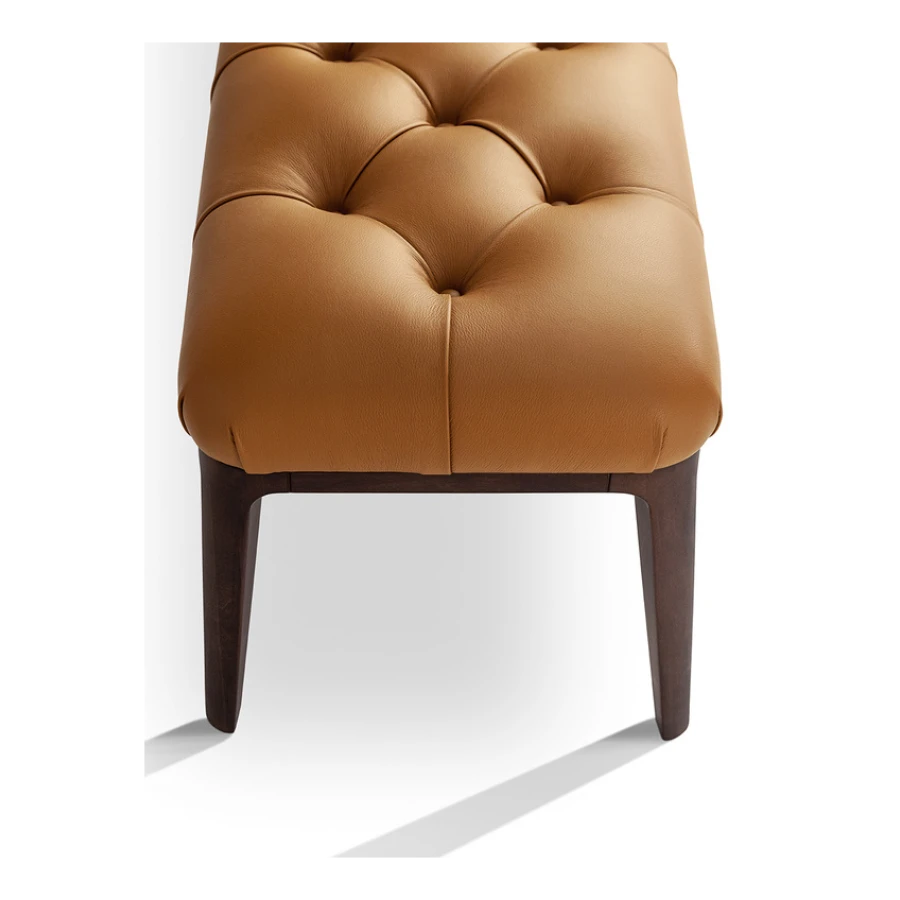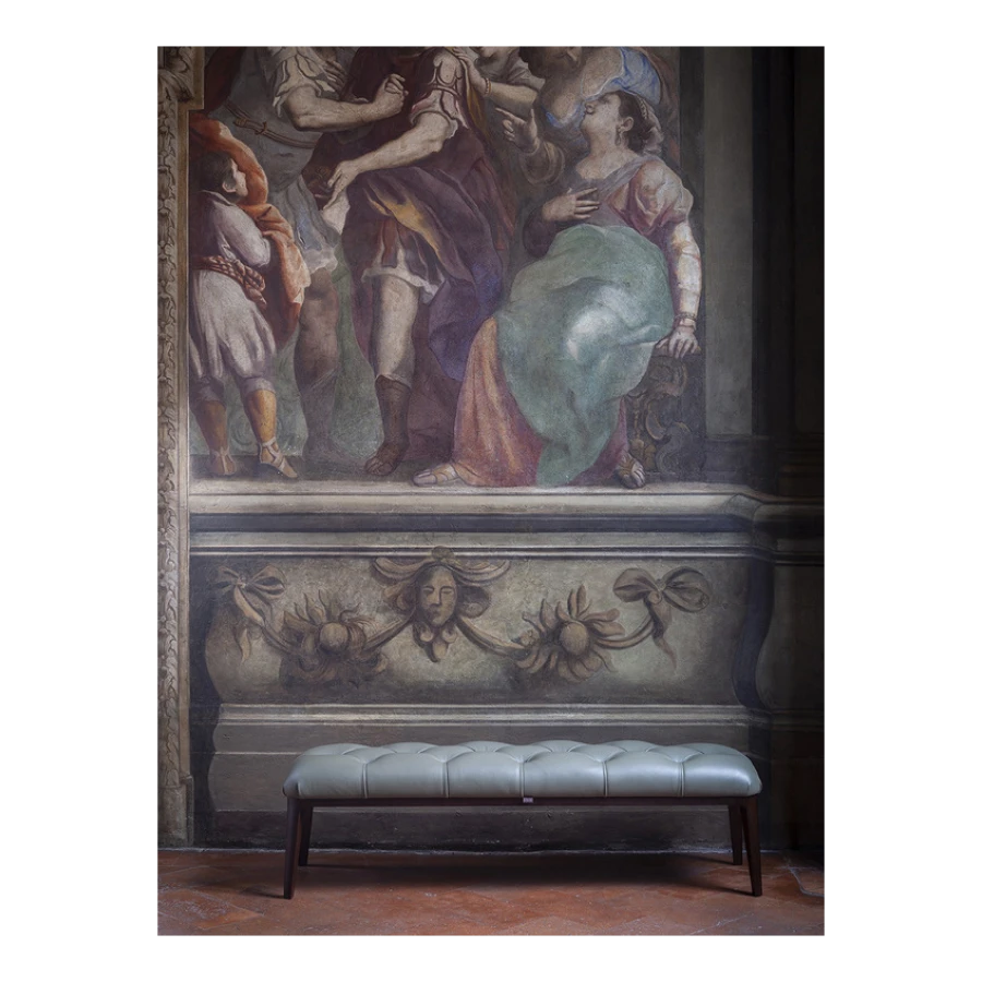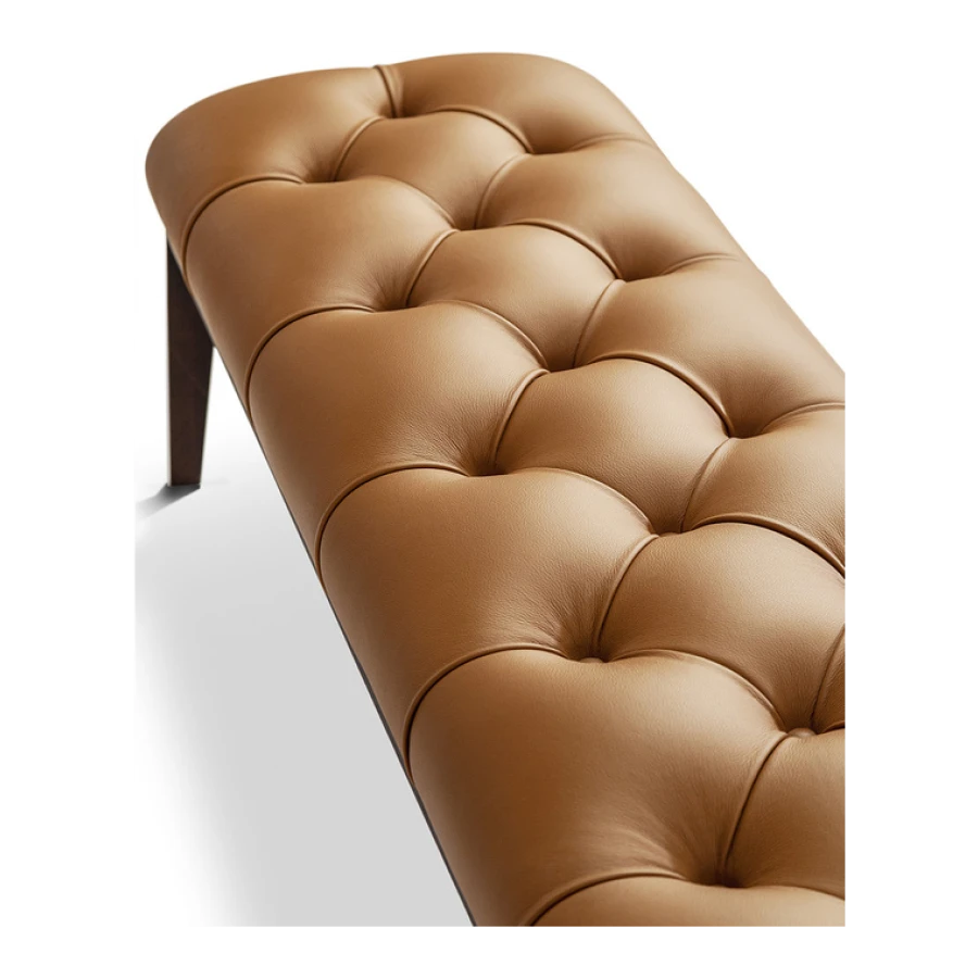 And it was the great musician’s piano stool that provided Roberto Lazzeroni with the inspiration to design Glenn, a pouf that can also be used as a bench or footrest. In reality, it was deliberately designed this way, acting as a natural complement for the new 2019 armchair. In fact, its soft Pelle Frau® leather seat is enriched with handmade detailing identical to that on the armchair’s backrest, the capitonné processing that has come to symbolise the quality and artisan expertise of the Poltrona Frau brand. The personality, great harmony and balanced proportions of the Glenn pouf make it an independent and versatile item of furniture that is at home in any setting, whether on its own or combined with other furnishings.
