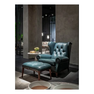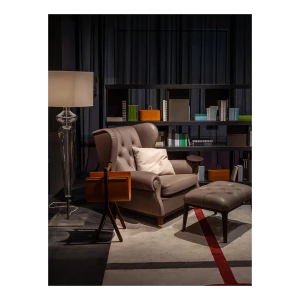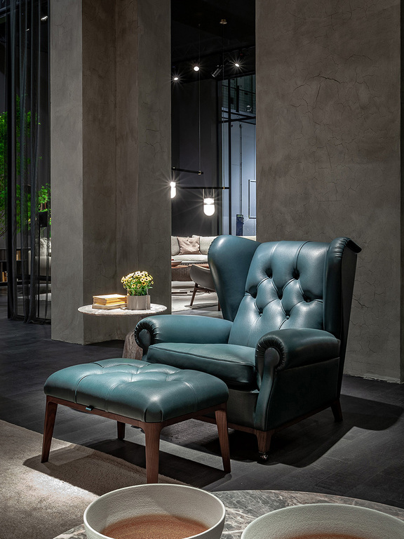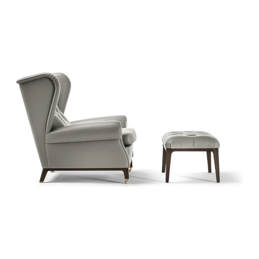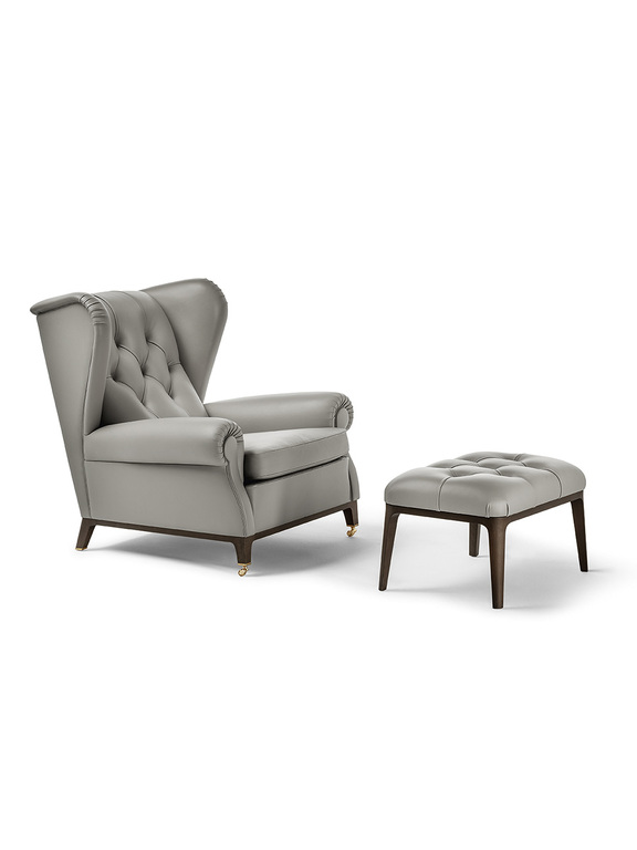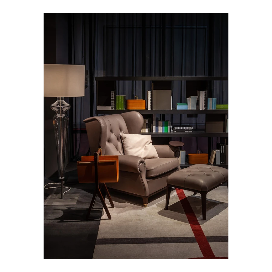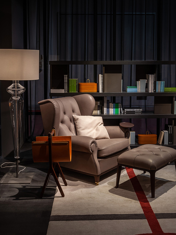 And it was the great musician’s piano stool that provided Roberto Lazzeroni with the inspiration to design Glenn, a pouf that can also be used as a bench or footrest. In reality, it was deliberately designed this way, acting as a natural complement for the new 2019 armchair. In fact, its soft Pelle Frau® leather seat is enriched with handmade detailing identical to that on the armchair’s backrest, the capitonné processing that has come to symbolise the quality and artisan expertise of the Poltrona Frau brand. The personality, great harmony and balanced proportions of the Glenn pouf make it an independent and versatile item of furniture that is at home in any setting, whether on its own or combined with other furnishings.
