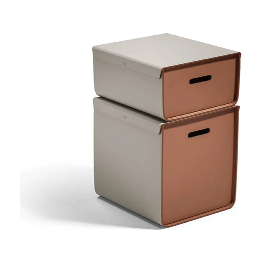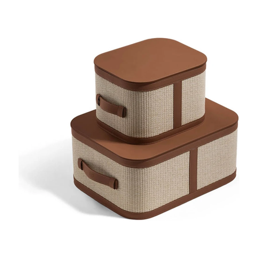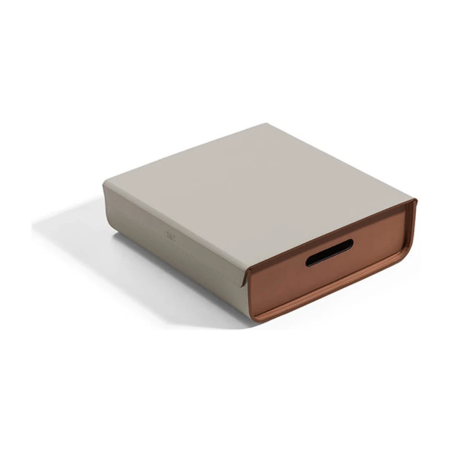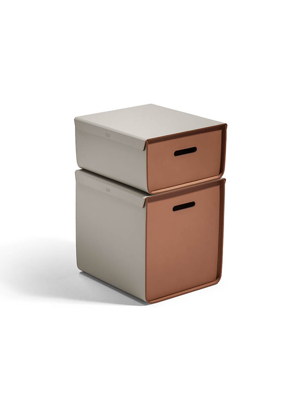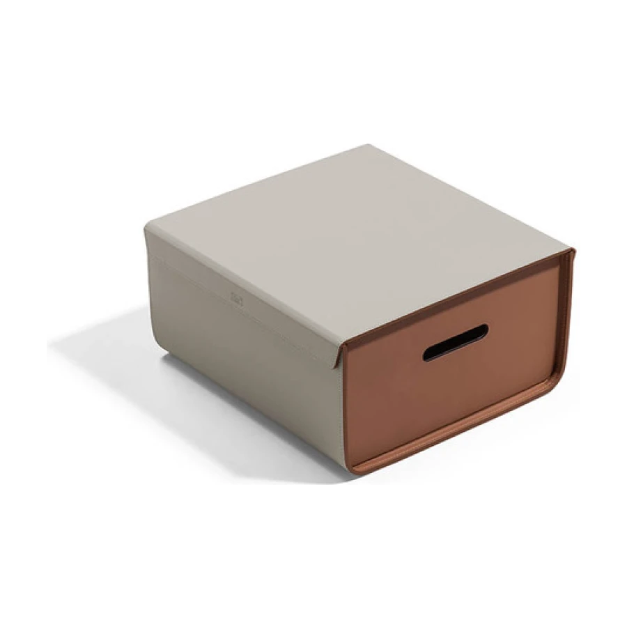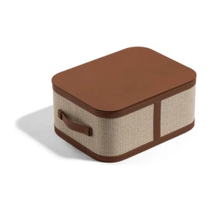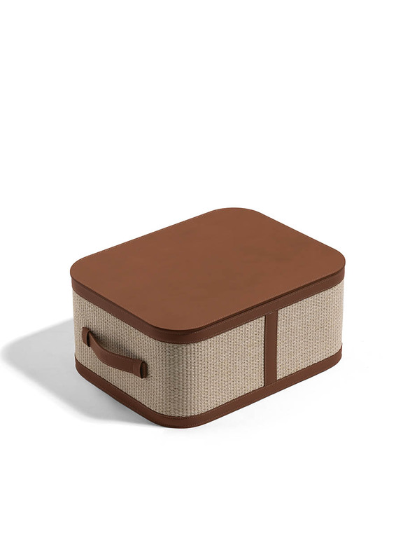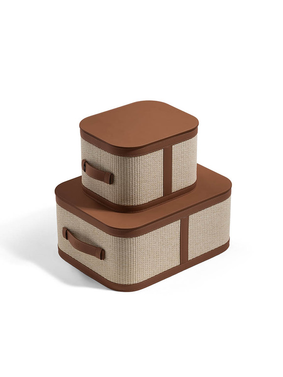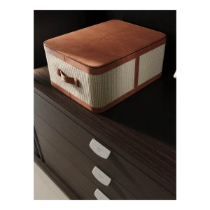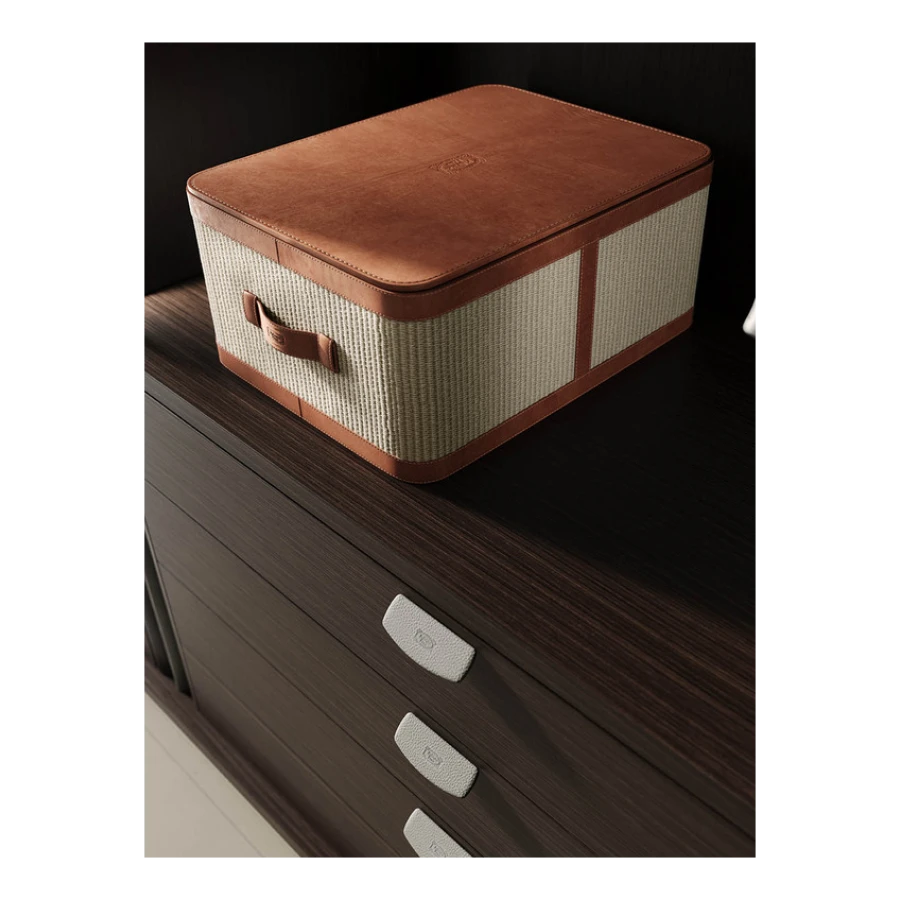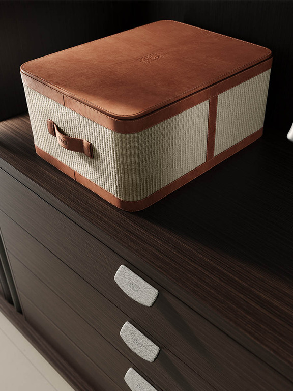 Extremely useful for storing linen or accessories in traditional and walk-in wardrobes, Poltrona Frau boxes furnish the bedroom with the same refined style characterizing the other rooms throughout the home. They come in two versions: Cherish Box, in raffia and saddle leather, with rounded edges and applied side handles, and Alcove Box, made entirely of saddle leather with a more squared shape, featuring carved side handles and a lid with invisible magnetic closure. Poltrona Frau’s wardrobe boxes are stackable and available in various sizes.