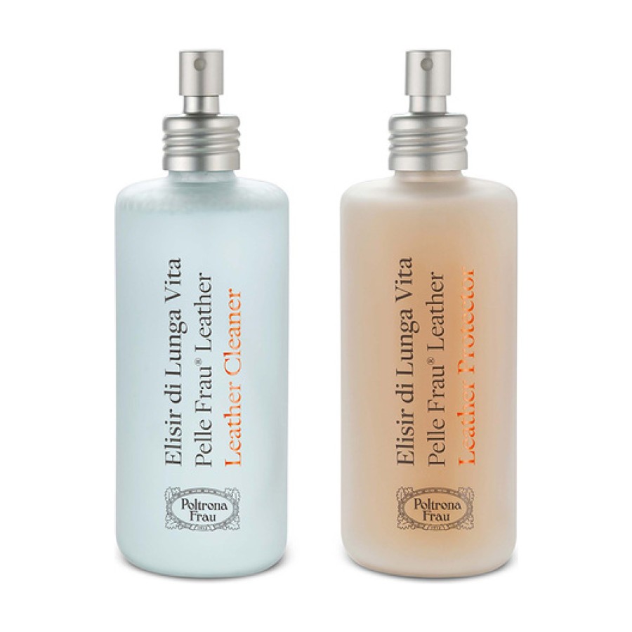 Elisir di Lunga Vita Bottles Kit is a cleaning kit designed for real leather lovers. A specifically designed accessory for the painstaking and thorough cleaning of your product. Elisir di Lunga Vita Bottles Kit is the perfect solution for keeping your Pelle Frau® leather upholstery soft and perfect at all times.