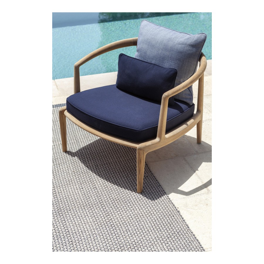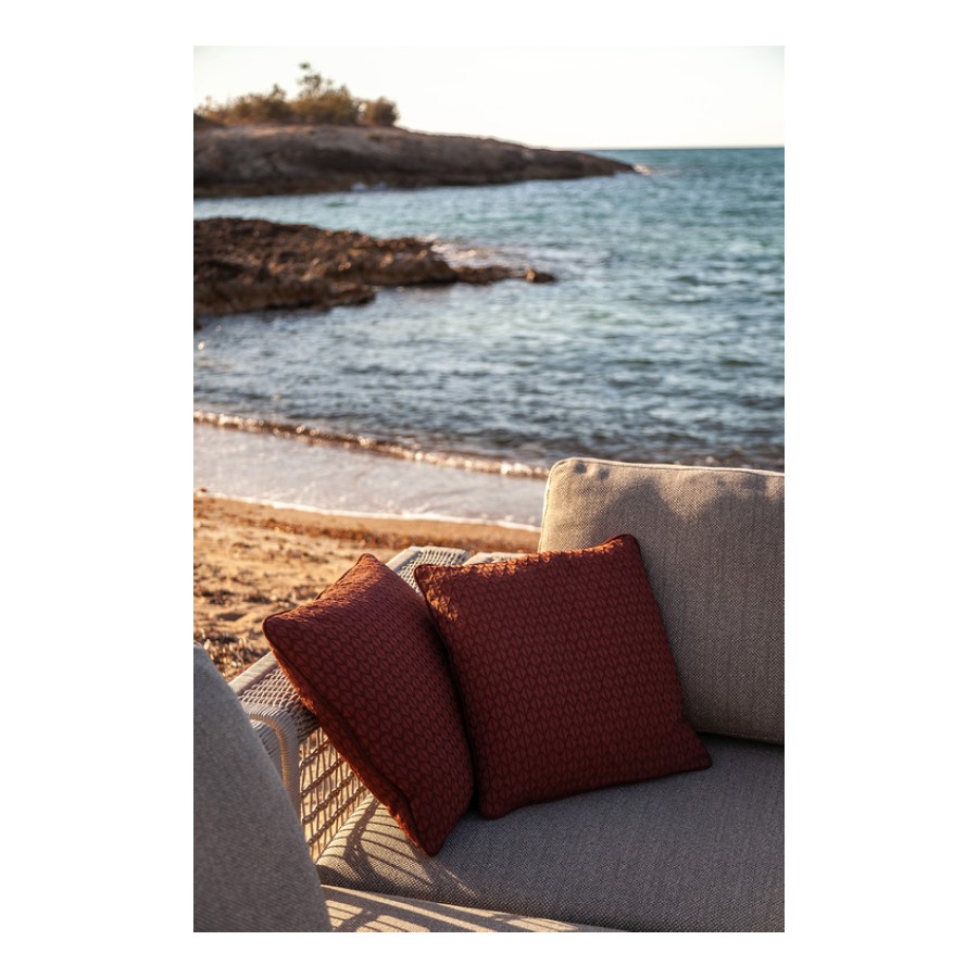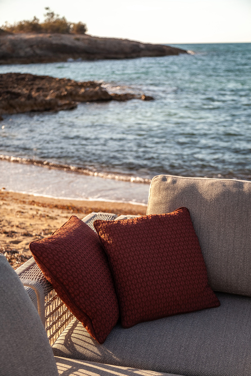 The line of decorative cushions for outdoor use adds a touch of decorative flair and stylishly transforms the entire space. They can be used to complement all the seating in Poltrona Frau’s Boundless Living Outdoor Collections, from outdoor armchairs and small armchairs to sofas. The decorative garden cushions are available in three sizes, square and rectangular (54x47cm, 47x47cm, 46x22cm). They are made with removable fabric covers in bright colours that match the border piping. Made with acrylic or polypropylene yarns in seven variants, two developed exclusively with Loro Piana Interiors, the outdoor fabrics reveal an unusual texture and softness to the touch as well as highly original patterns for outdoor furnishings. They are available in four colour families, inspired by the typical colours of the Mediterranean sea and vegetation.