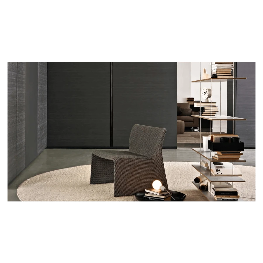 Patricia Urquiola’s idea brought about a whole line of seats, aerial elastic surfaces providing pure comfort. Leather or fabric: fluid shake and continuous profiles where the detail of a curve creates a silhouette without any additions or accessories. Impeccable display of minimalism.